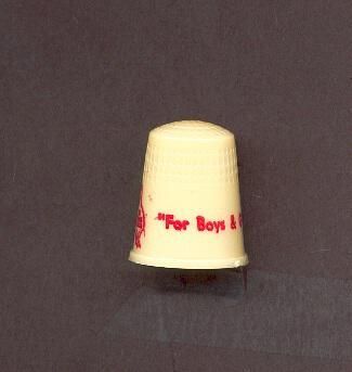Cream coloured plastic advertising thimble with red print. Picture of goose in red outline and the words Red Goose Shoes inside. Also ÒFor Boys and GirlsÓ printed in red on the wide band. U.S.A. 15 in apex.
