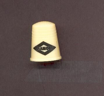 Cream coloured plastic advertising thimble with black logo. Diamomd shaped logo with ÒDiamondÓ in it. U. S.A. 2 in apex.