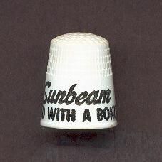 White plastic advertising thimble with black printing. ÒSunbeam Bread With A BonusÓ