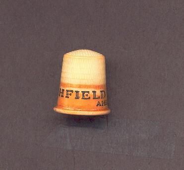 Plastic advertising thimble, cream coloured. Orange coloured band with ÒRichfield Years Ahead*Ó in black. Irregular orange paint which looks like it has always been that way, not worn. Inside apex B&B St.Paul U.S.A.