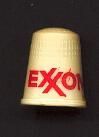 Cream coloured plastic advertising thimble with raised band. Red advertising on wide plain band ÒEXXON For Your CarÓ U. S. A. 10 in apex.