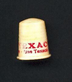 Plastic, early type, thimble. cream colour with red advertising. Advertising ÒTexaco It Pays Use Texaco Products*Ó Inside apex B&B St. Paul U.S.A.