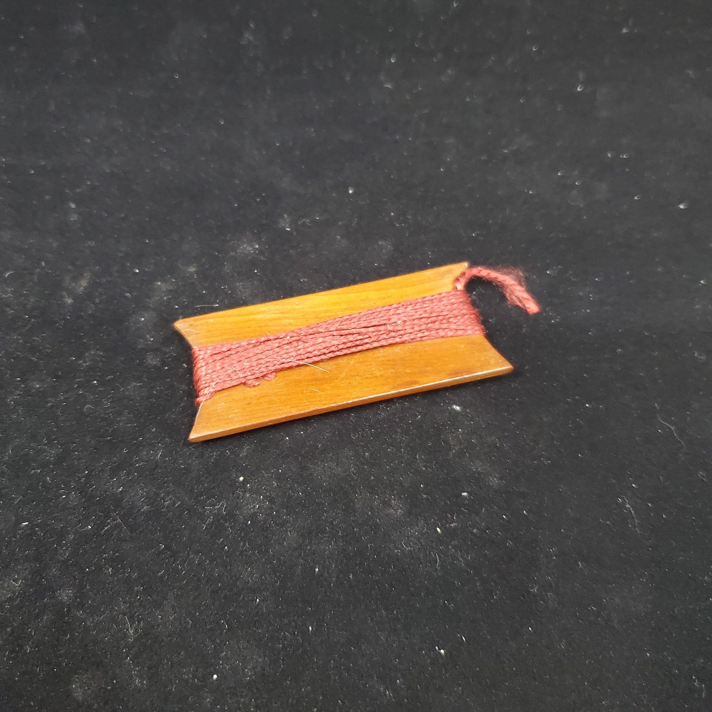 Wooden thread winder, rectangular shape. Polished reddish brown wood.
