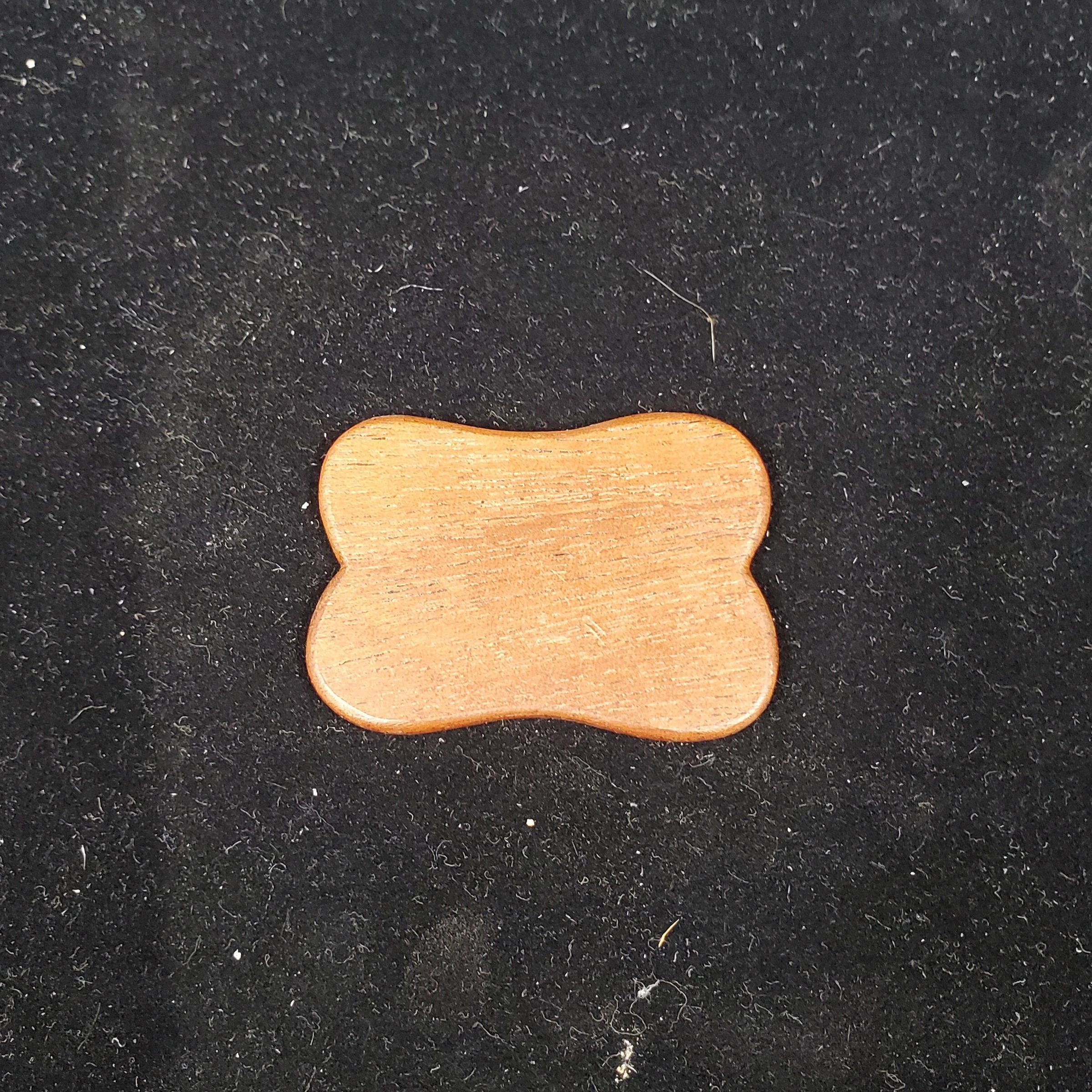 Wooden - mahogany - thread winder. Reddish brown colour. Basic rectangular shape.