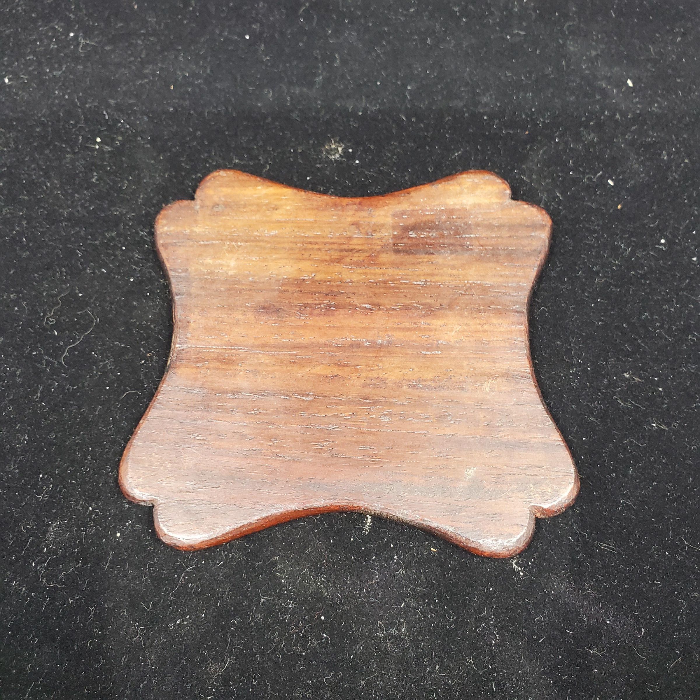 Wooden, walbnut? - dark brown thread winder. Scallop shaped. Darker than shows in picture.