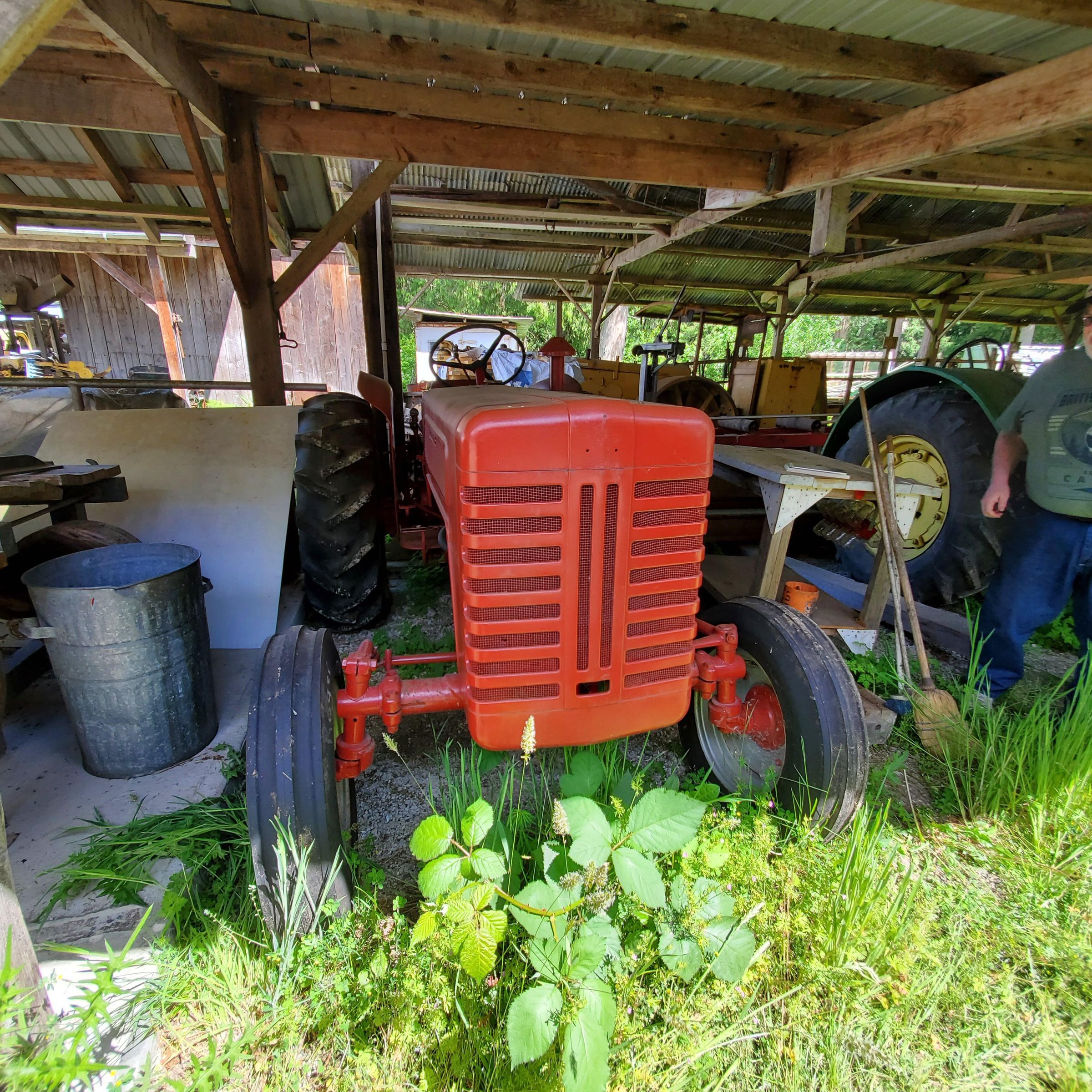 The McCormick International B-275 was imported from England where it was built by International Harvester Great Britain. While International Harvester’s American-made tractors of the 1950s used the McCormick brand name for row-crop models and International for standard-tread and utility wheel tractors and crawlers, the B-275 used both names, with McCormick in small letters and International in larger letters. The B-275 was roughly the size and weight of the International 340 Utility but was a totally different British design. The engine was the British built International BD-144 engine a 143ci 4-cylinder diesel. The tractor had a dual-range 8-speed transmission and a differential lock, not normally available on American tractors at the time.