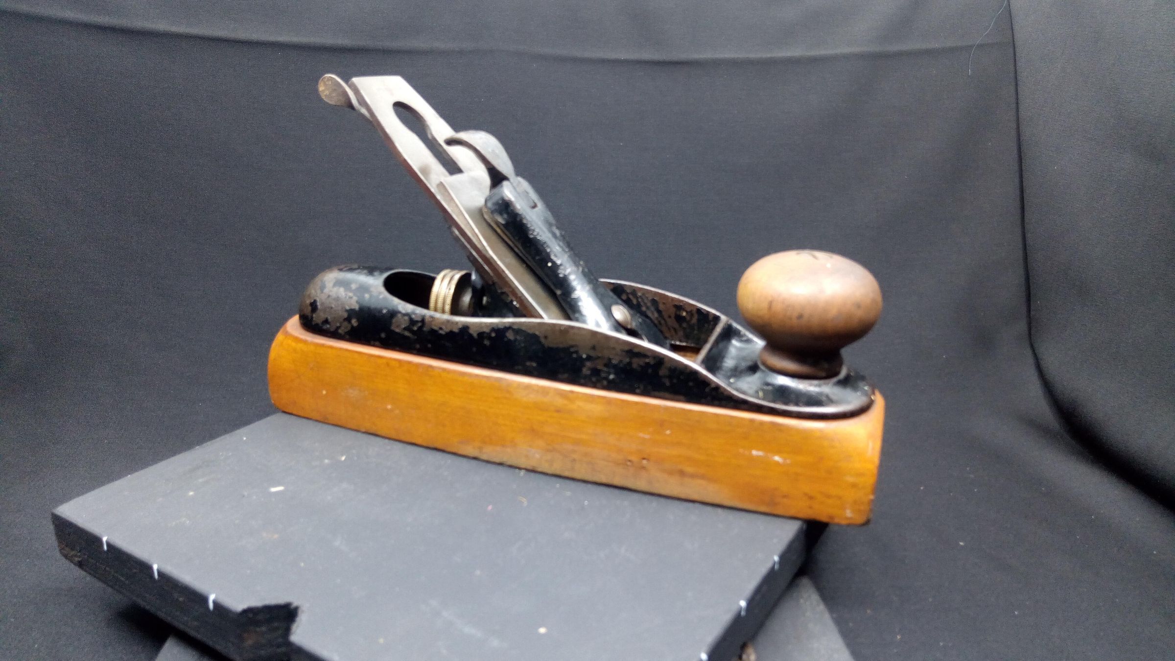Combining the adjustability of a metal plane with the traditional feel of a wooden base, these "transitional" planes were designed to convert tradesmen from wood planes to metal. In fact they remained very popular in their own right and were manufactured for well over 50 years.Use