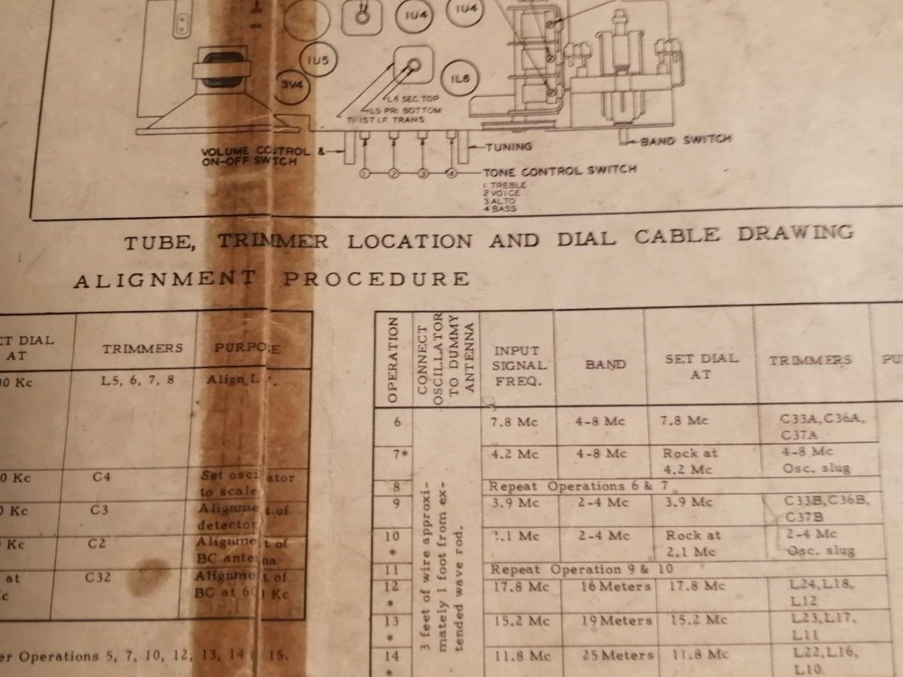 Tube trimmer location and dial cable drawing alignment procedure