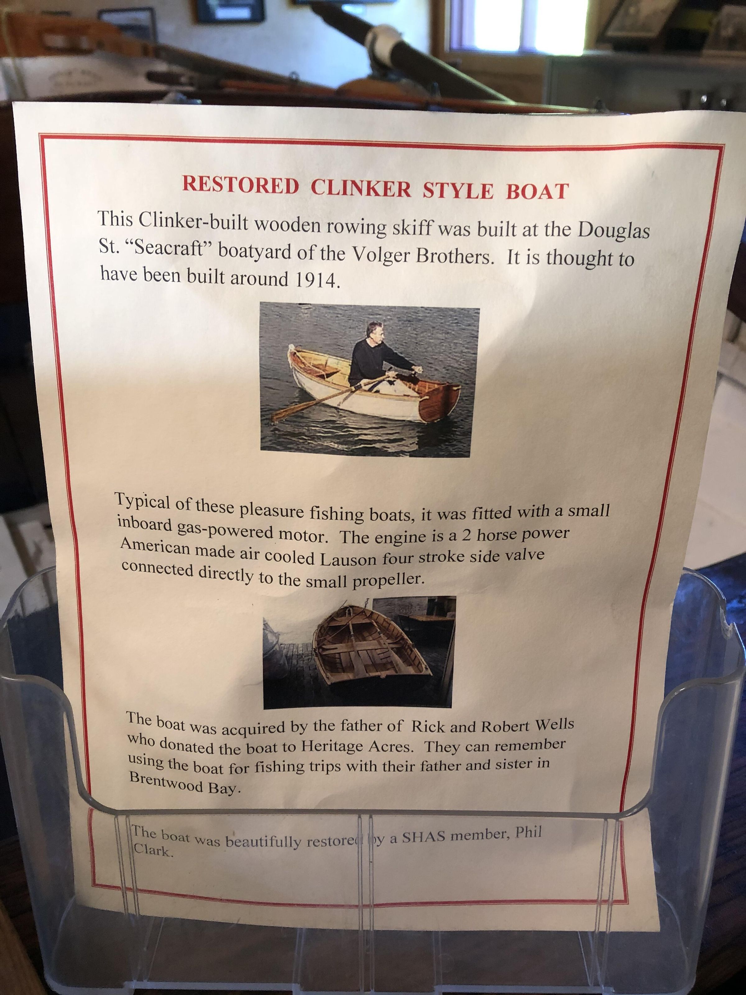 Vogler Brothers Clinker built skiff with 2hp inboard 1914