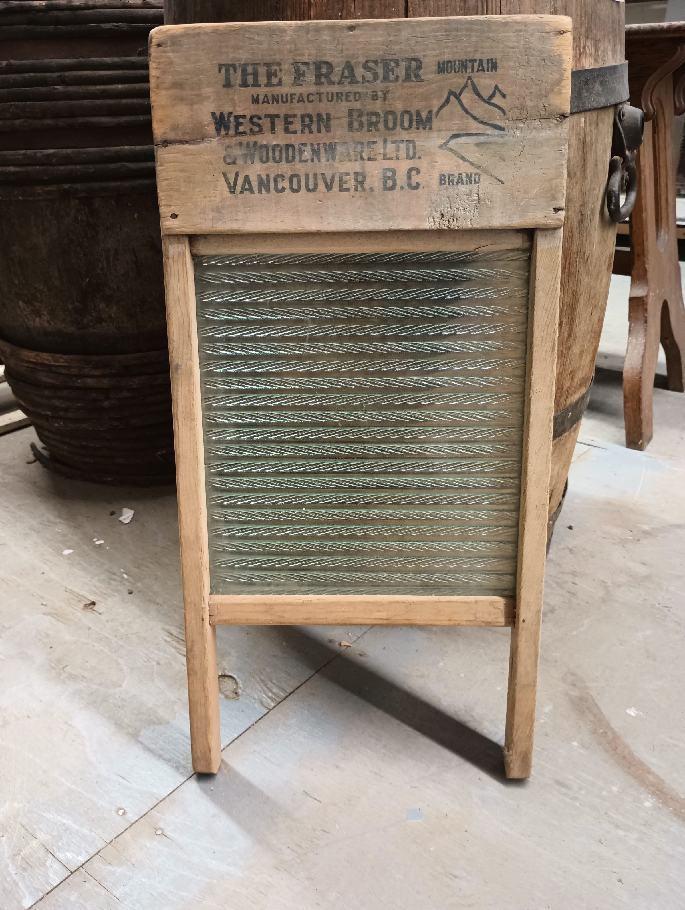 'The Fraser', a wooden washboard with textured glass insert manufactured by Western Broom and Woodenware Ltd. Vancouver B.C.