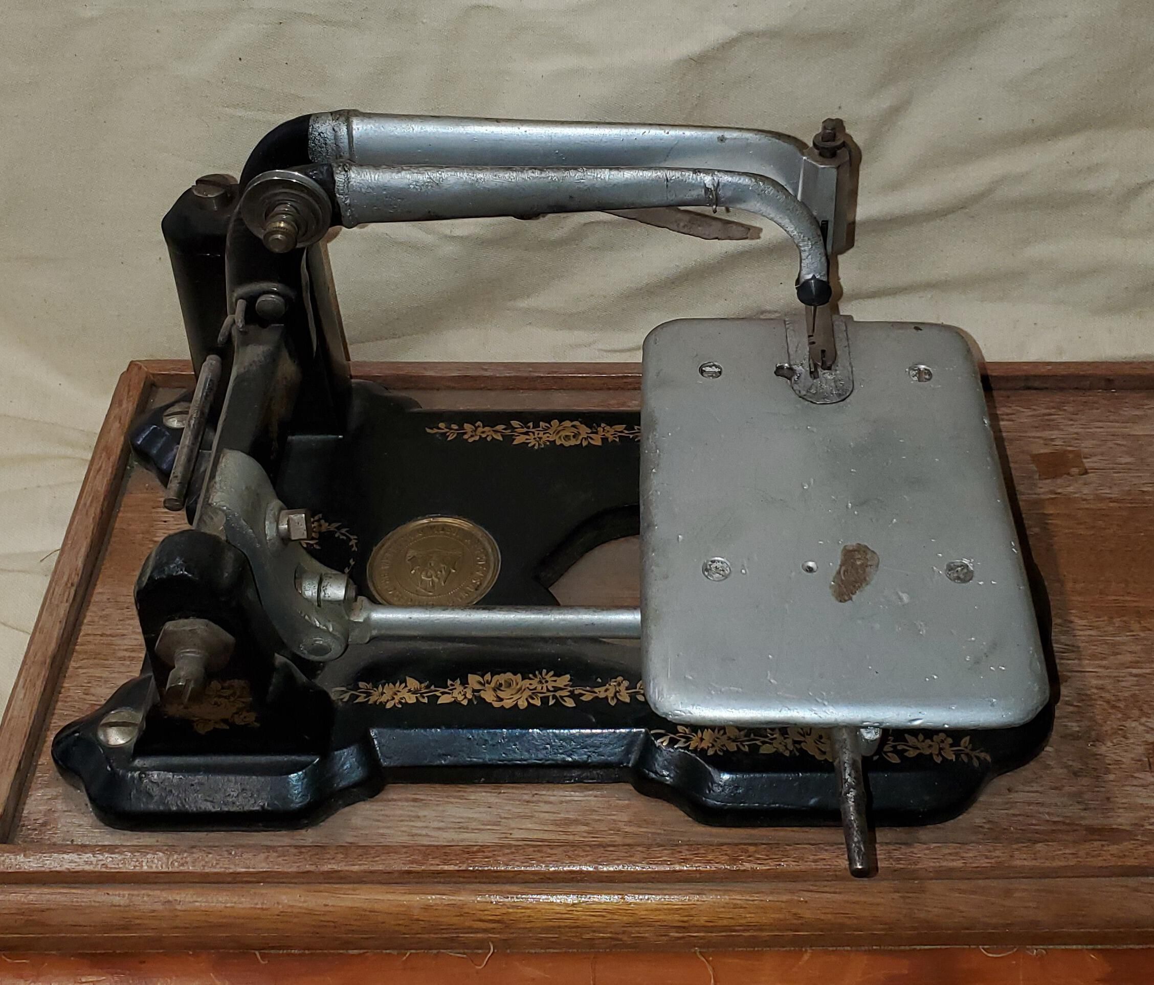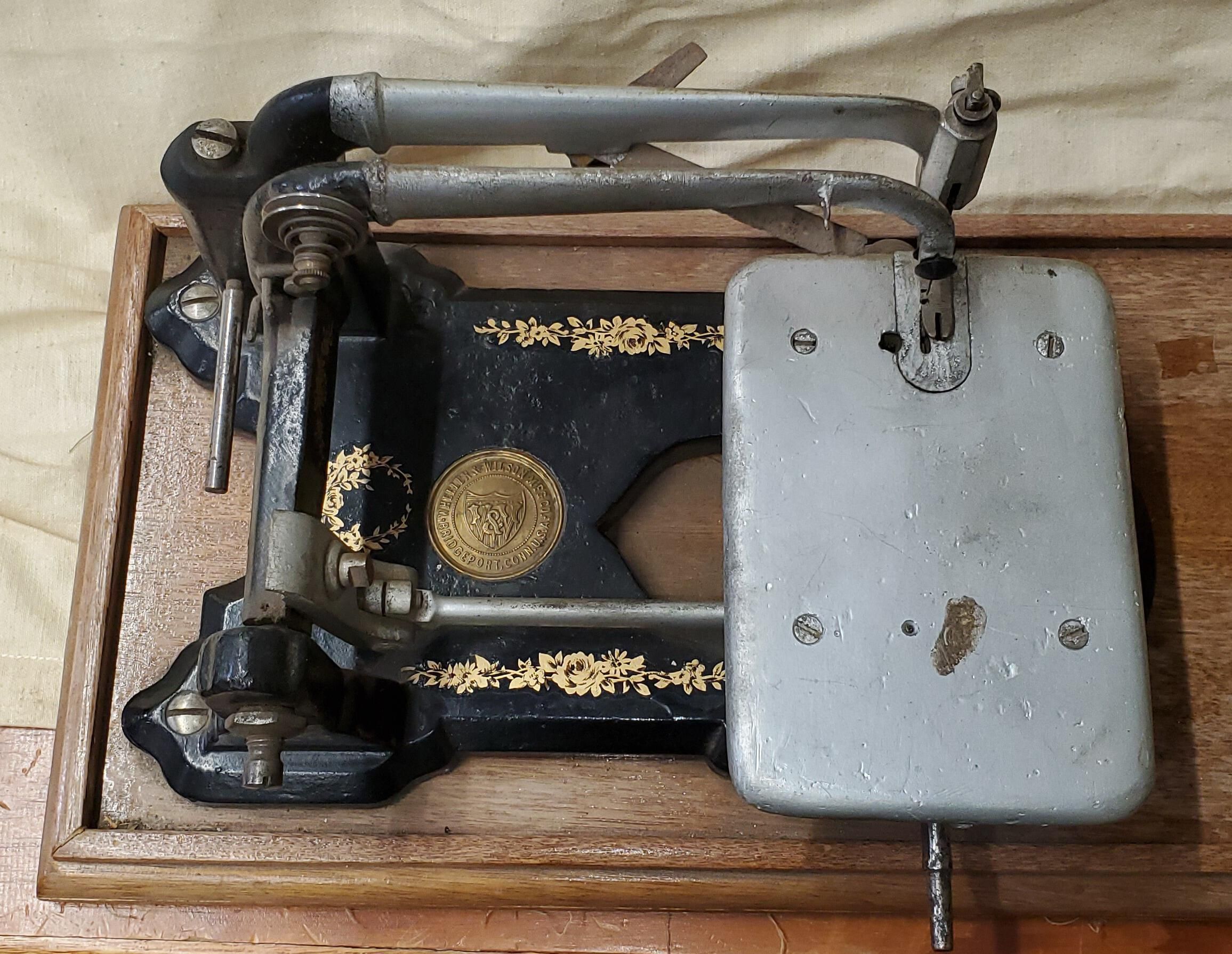Wheeler & Wilson portable, belt driven sewing machine manufactured in 1851.Context
