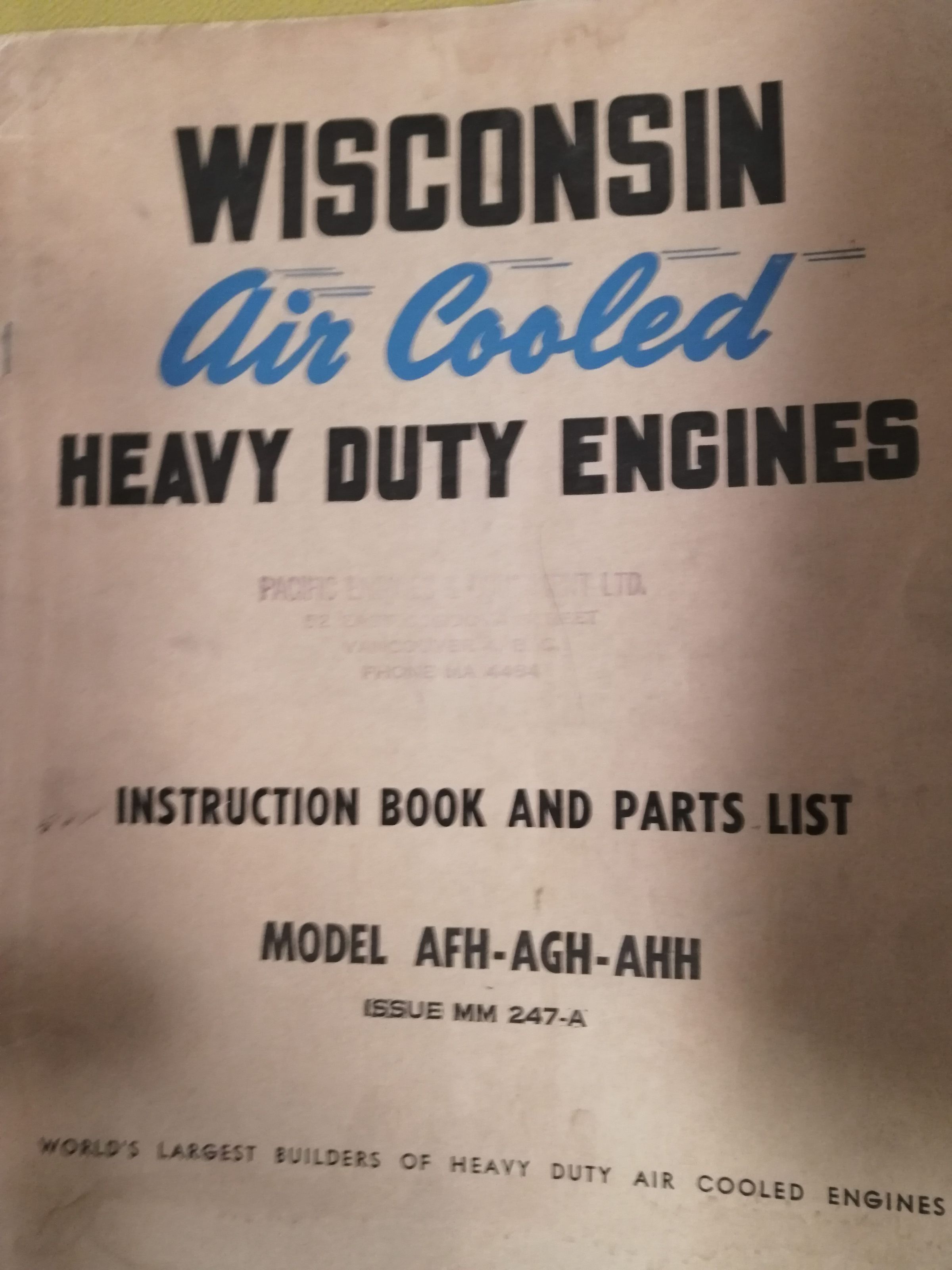 Wisconsin air cooled heavy duty engine . Instruction book and parts list. Model AFH-AGH-AHH
