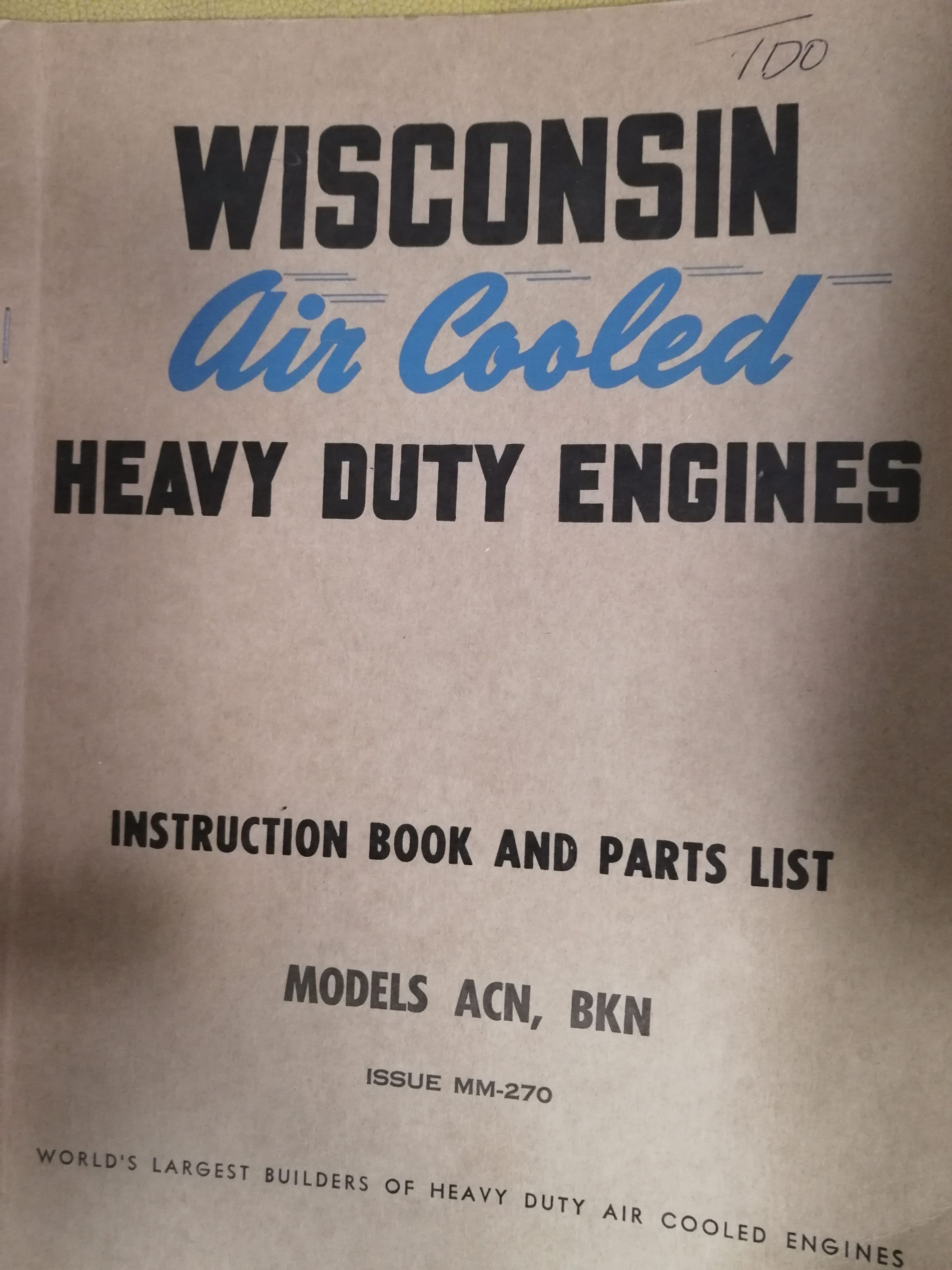 Wisconsin air cooled heavy duty engine. Instruction book and parts list. Models ACN, BKN