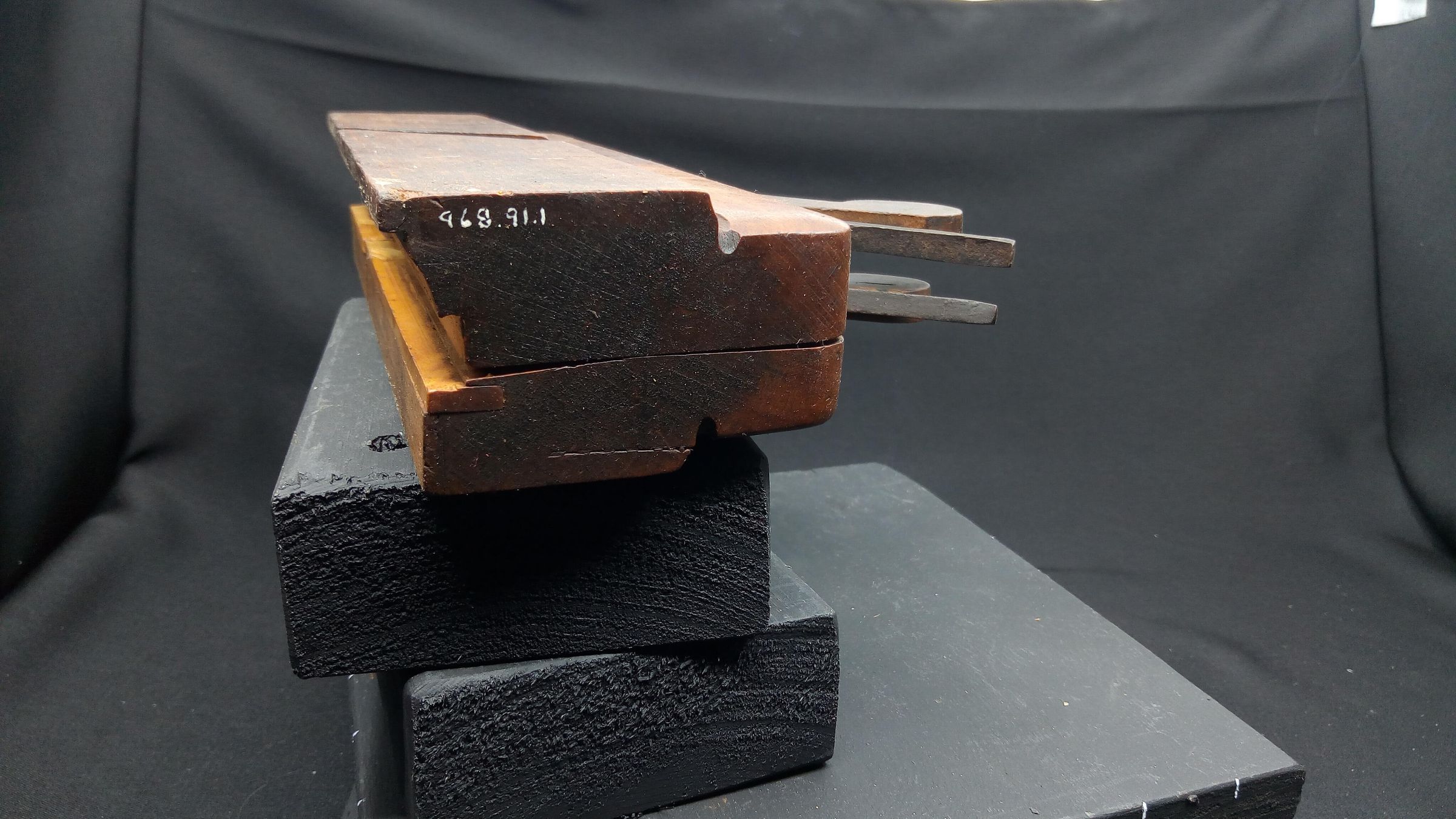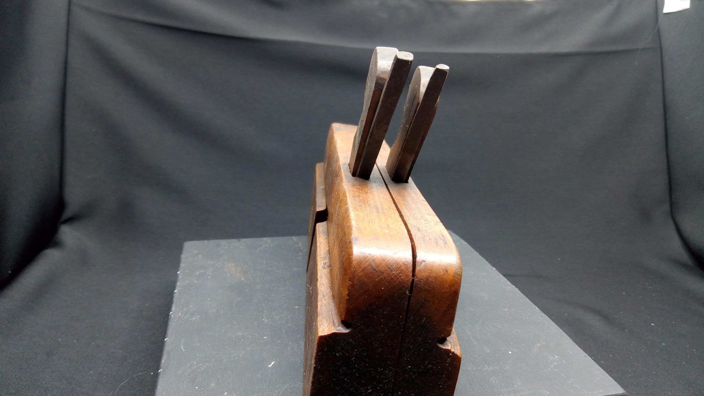 Two bladed moulding plane, split at the centre line to receive shims to vary the moulding width.