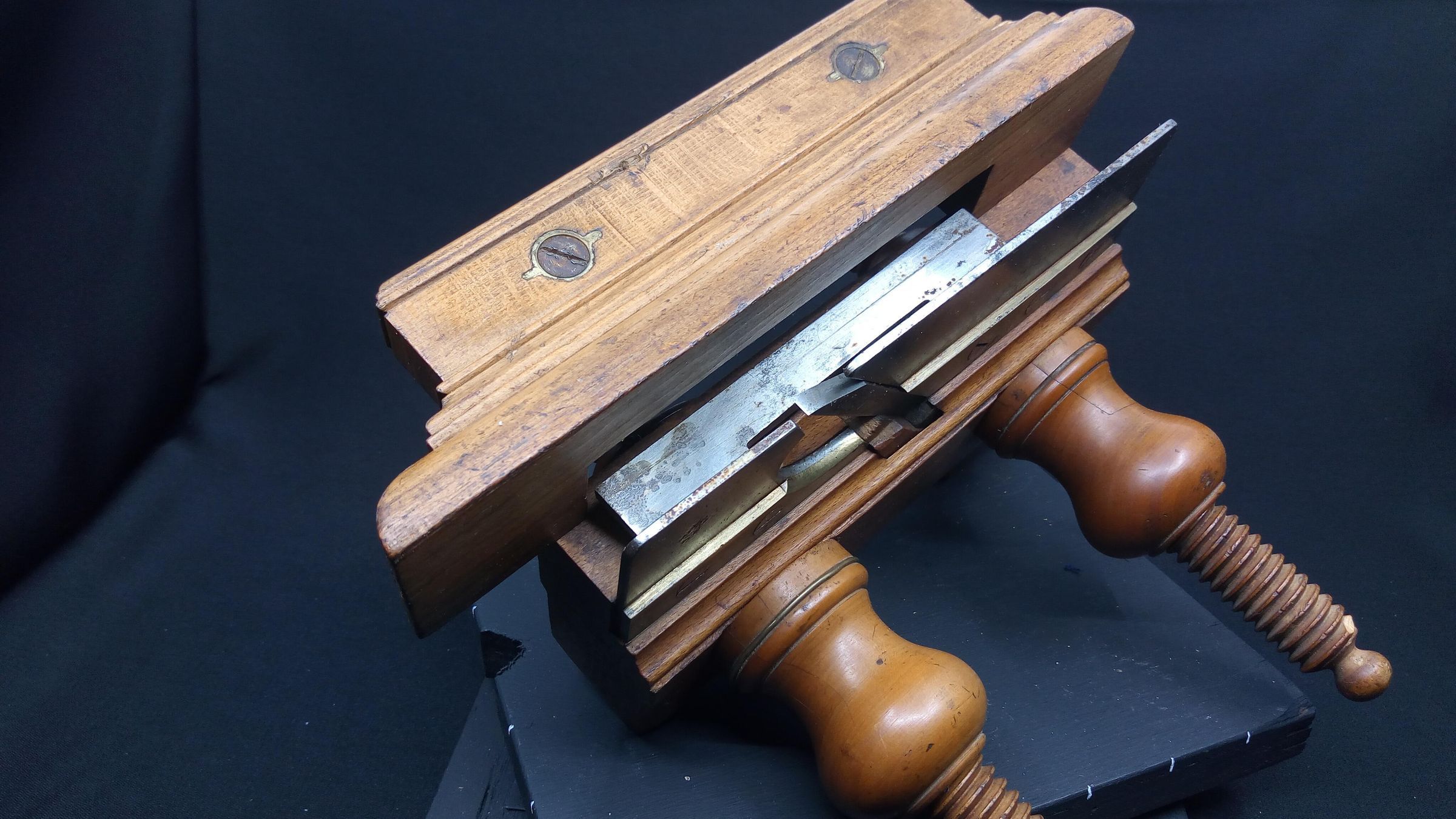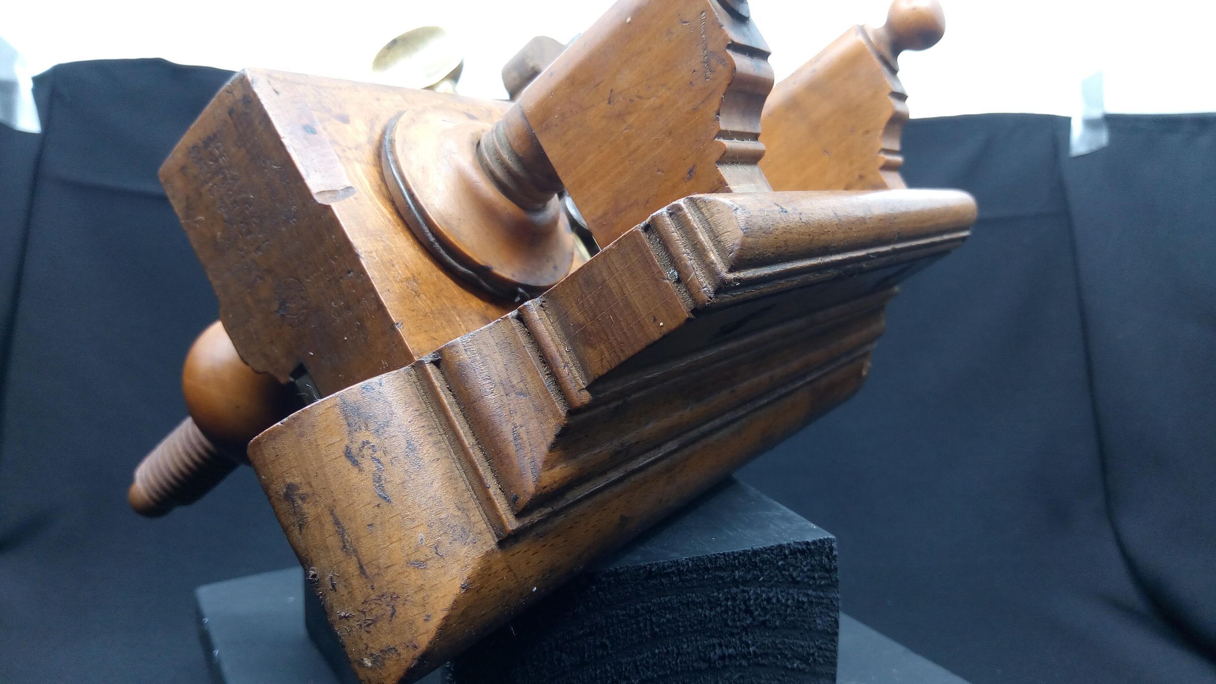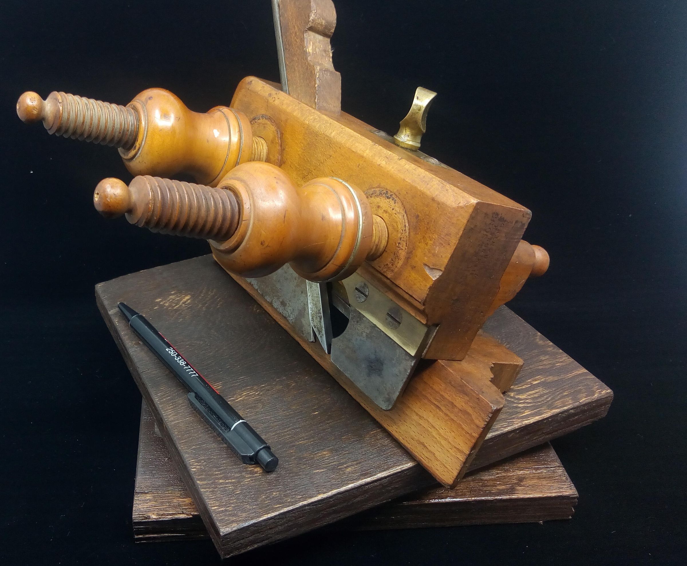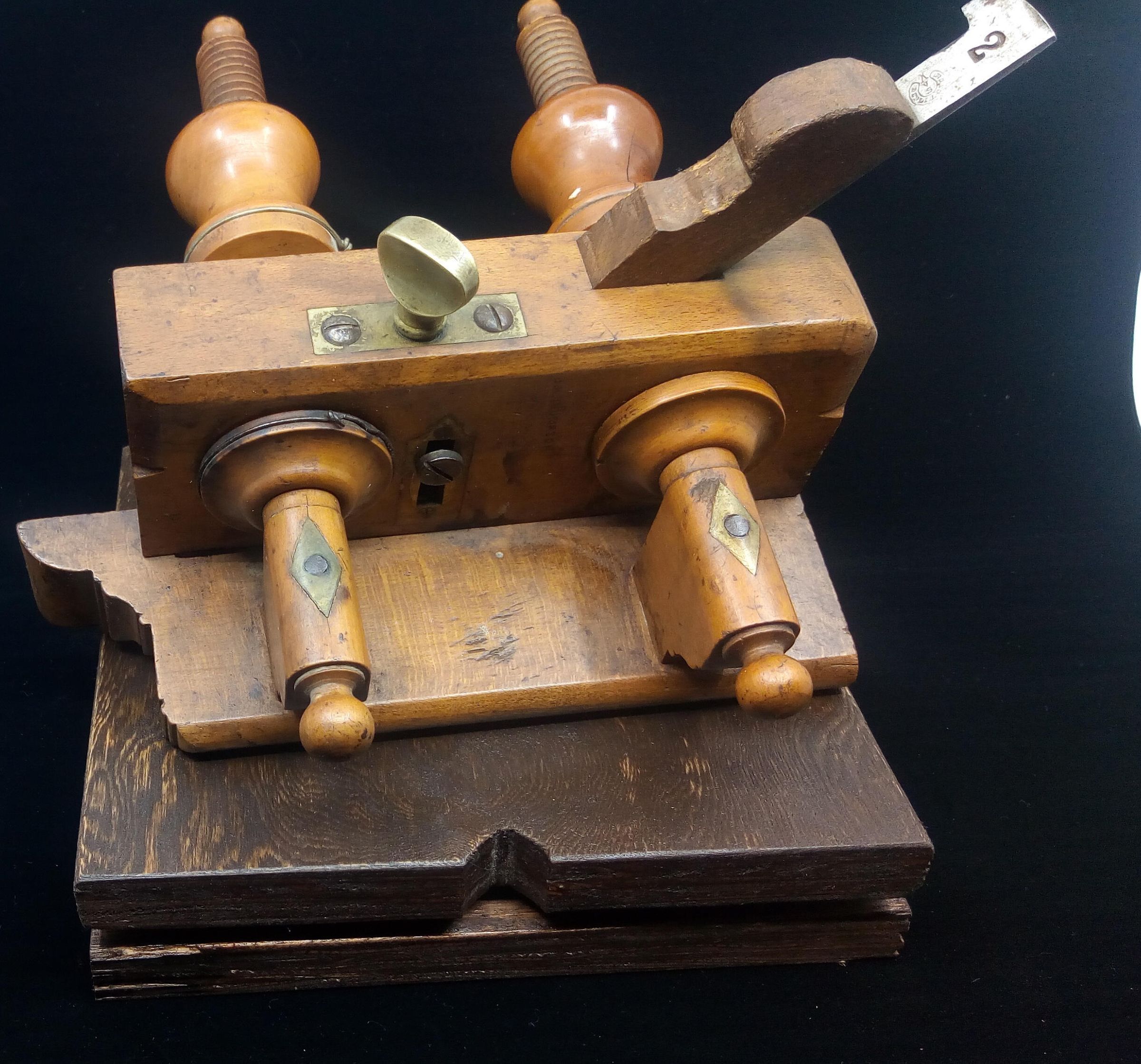 The wedge appears to be made of oak, a mismatch with the rest of the plane, it may be a home made replacement , you can see from its condition that the wedge gets a battering in the process of setting the shaving thickness.