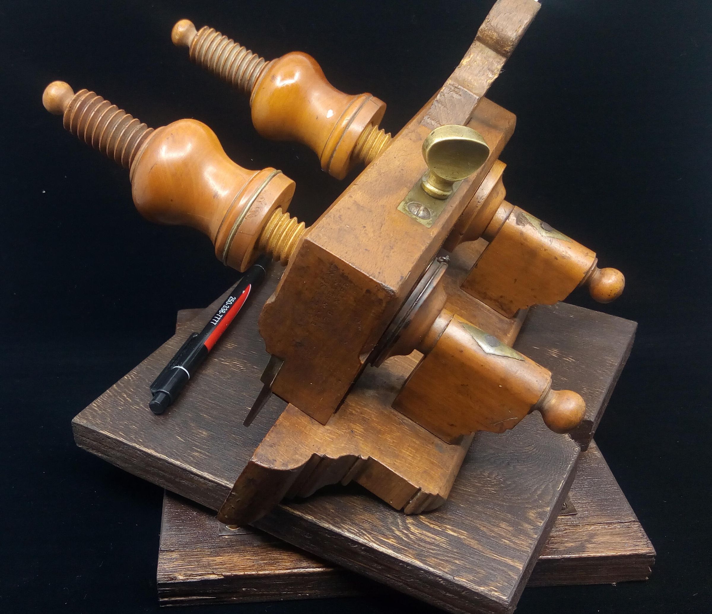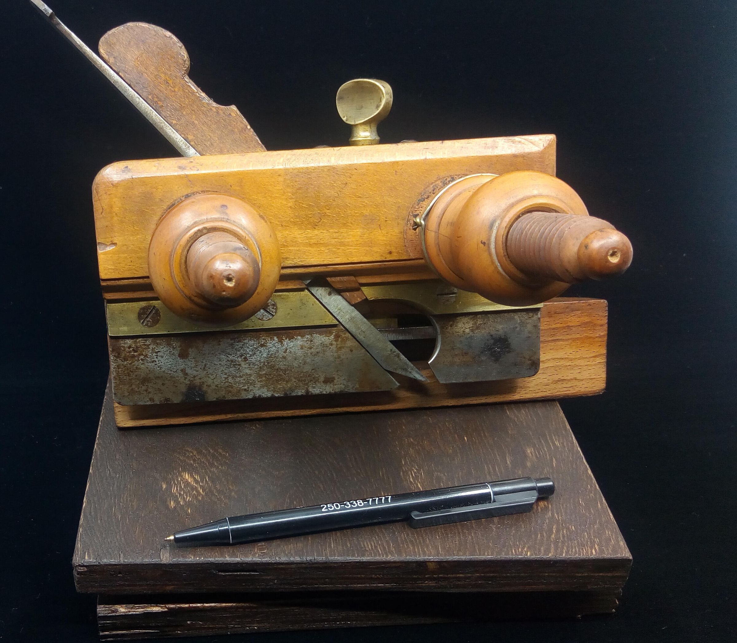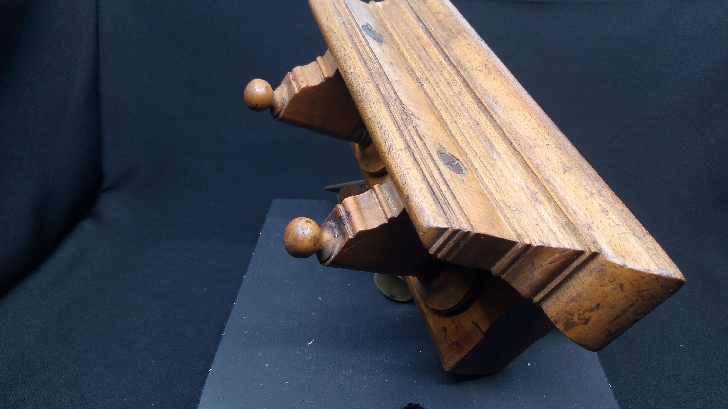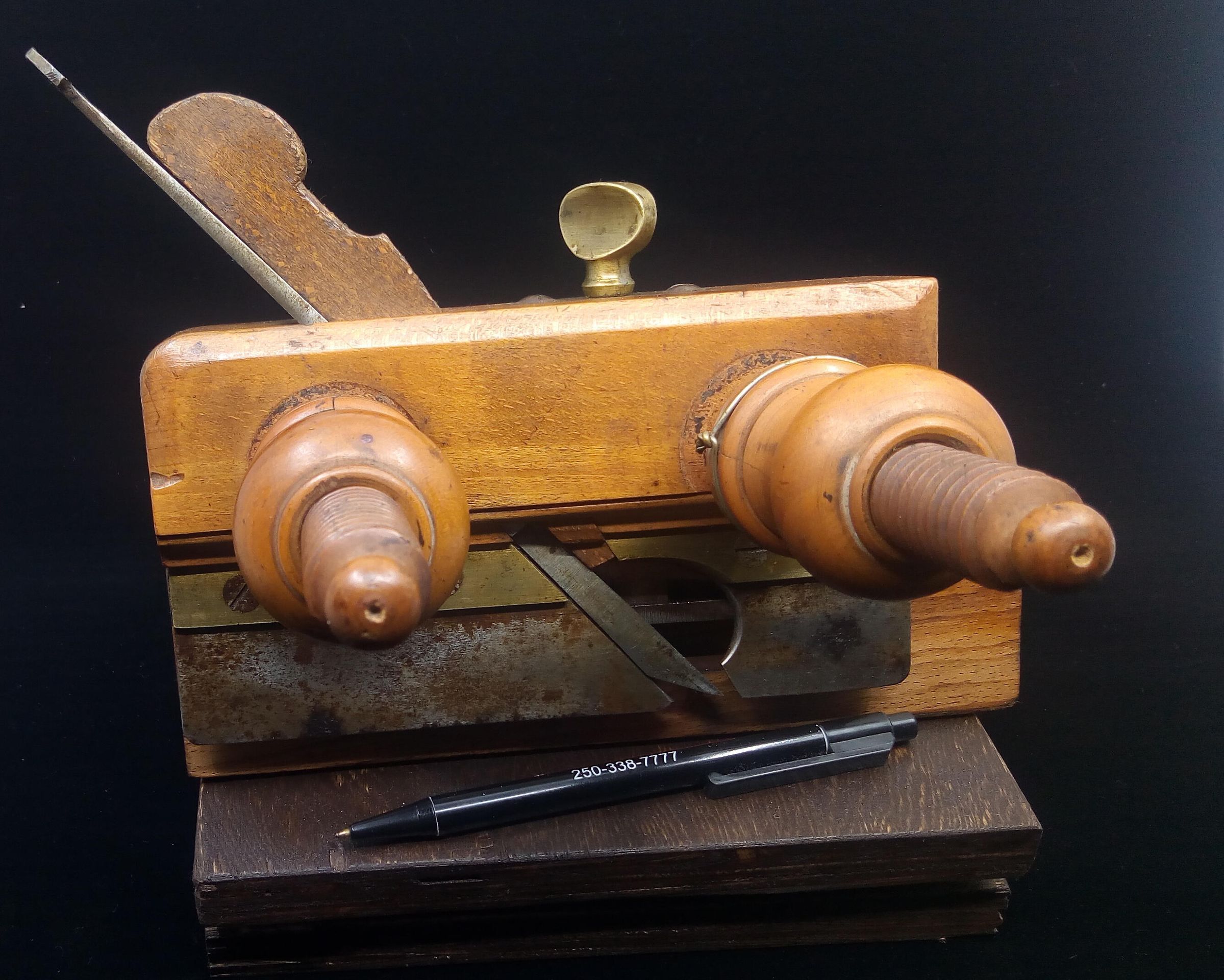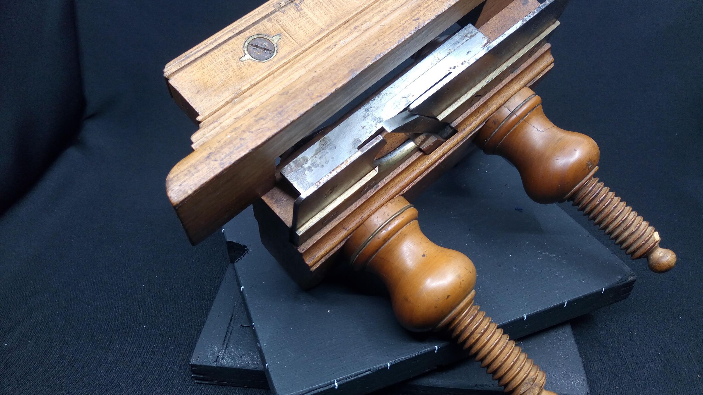 The wedge appears to be made of oak, a mismatch with the rest of the plane, it may be a home made replacement , you can see from its condition that the wedge gets a battering in the process of setting the shaving thickness.