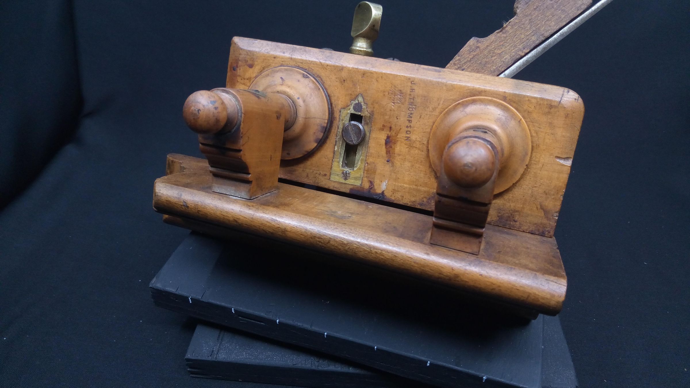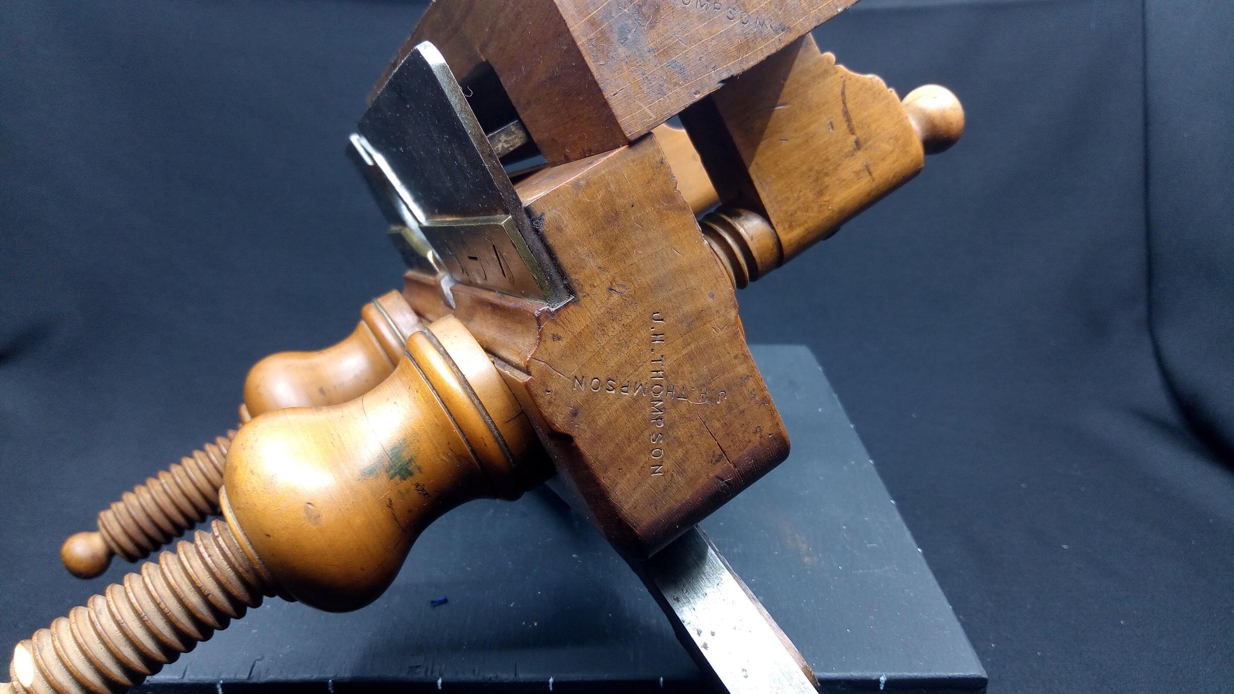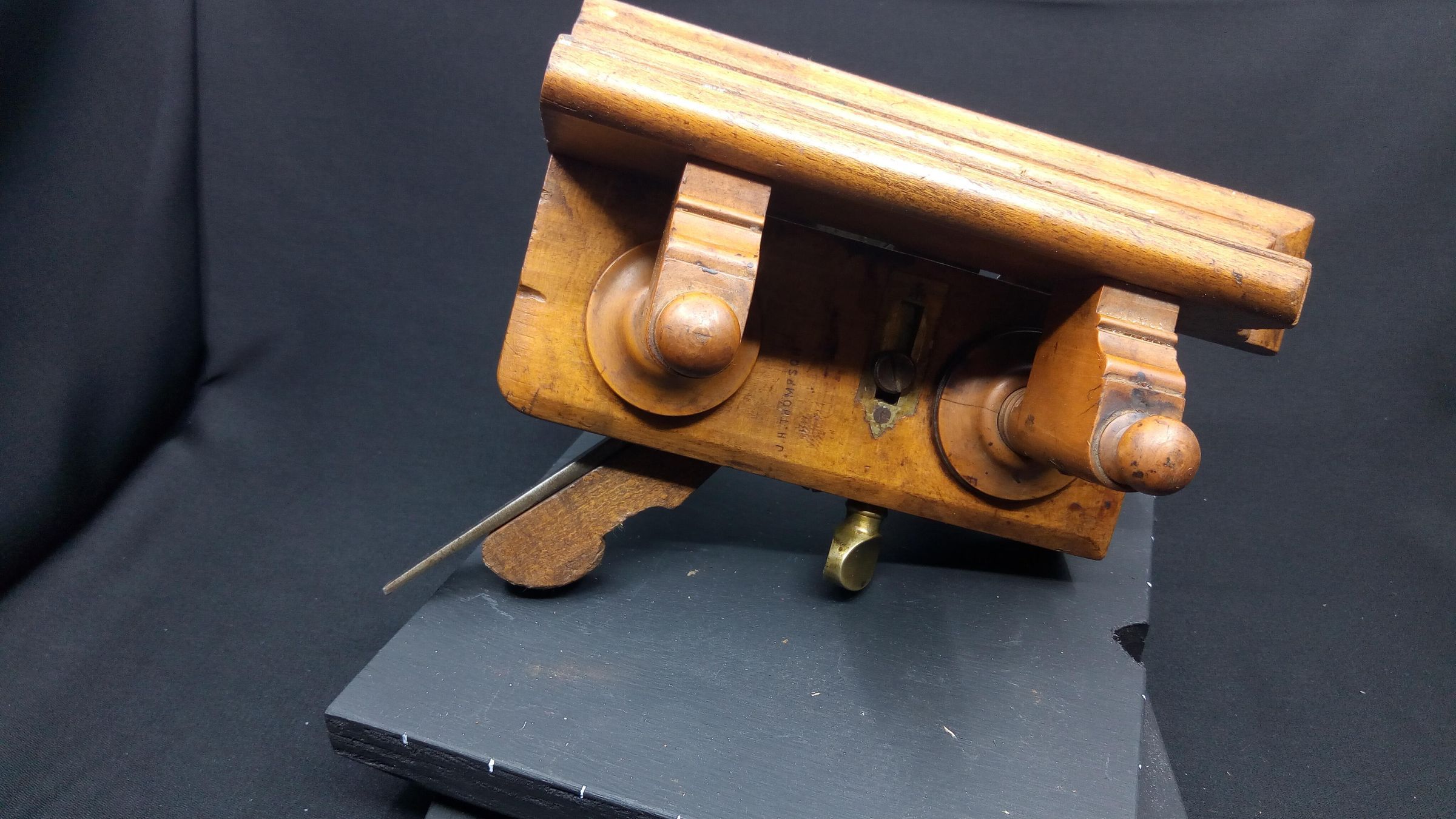 Atkin & Sons were in business in Birmingham, England as toolmakers from around 1830 to the mid 1970s. This plane represents the rising standards of living of the Victorian era, as the middle class grew and could buy finely finished furniture. At the same time the manufacture of tools was industrialized, rather than being made by the craftsman and his local blacksmith. This plane is stamped J.H. Thompson, a craftsman who could afford to have a stamp made to mark his treasured tools, there are a number of other tools in the museum collection with the same stamp.