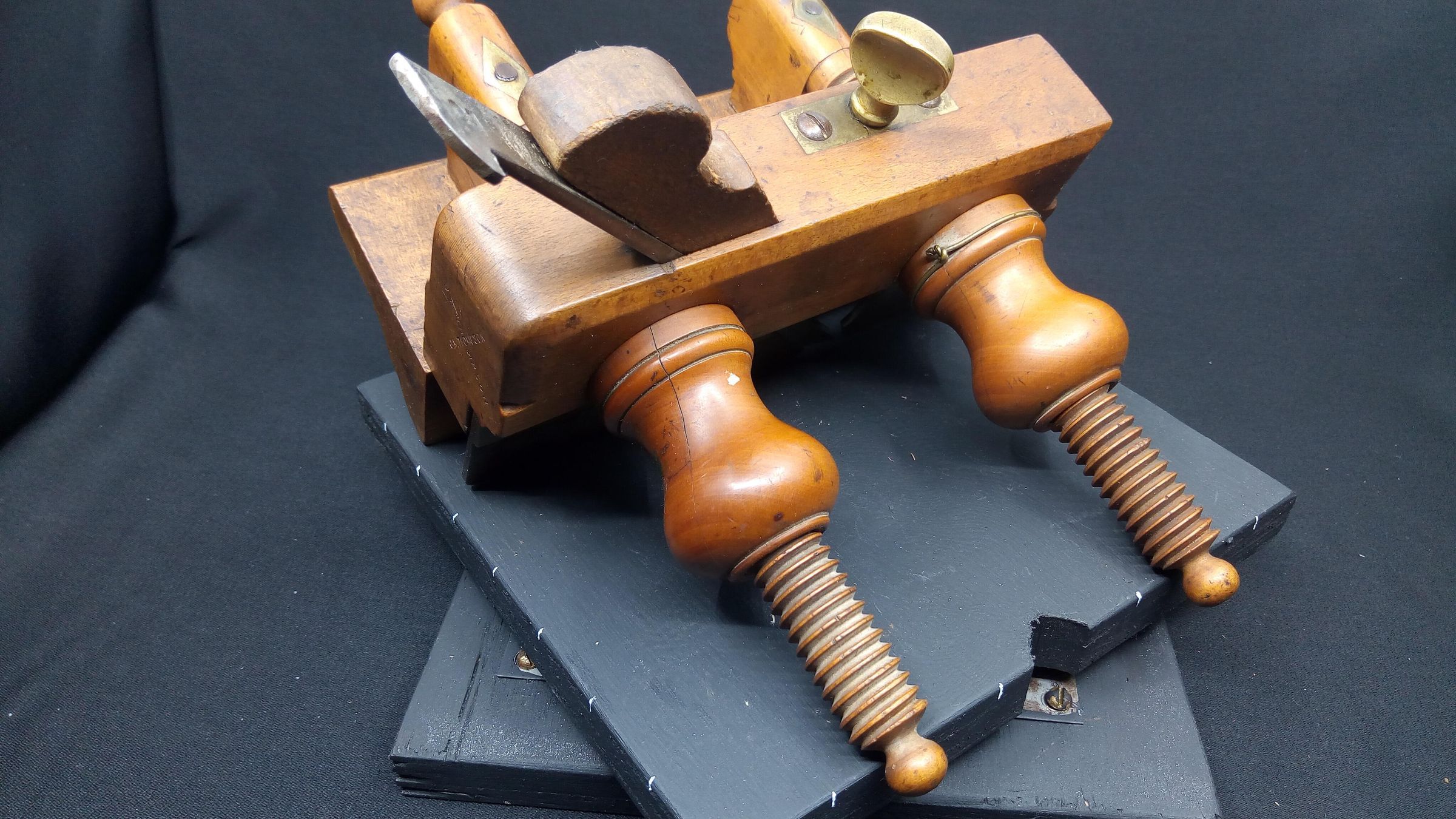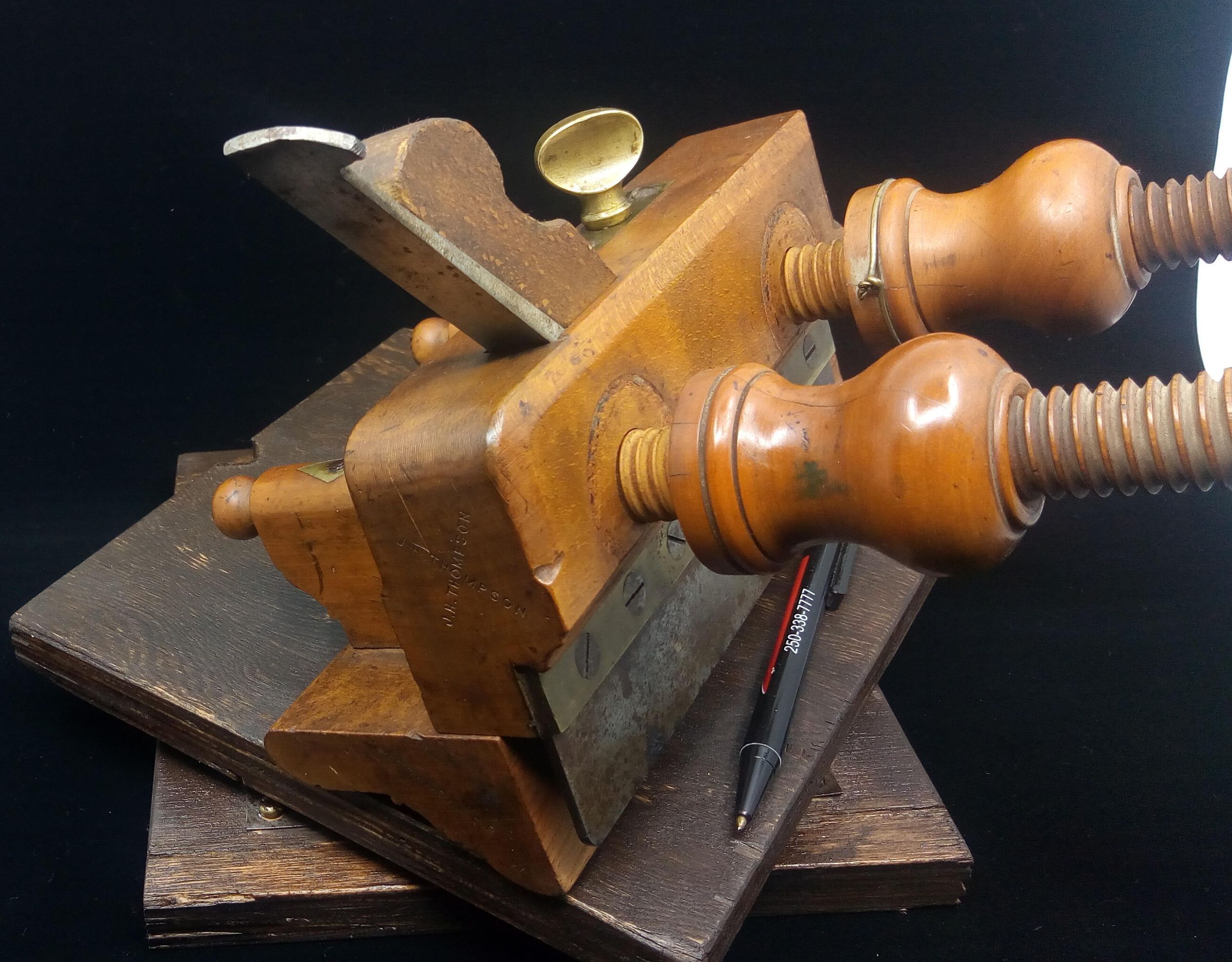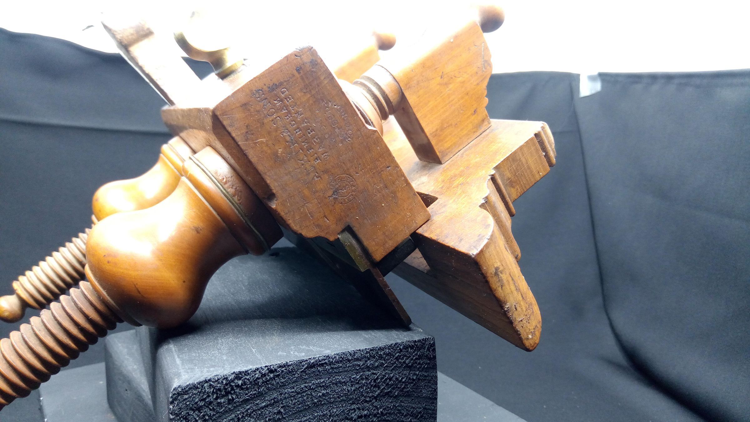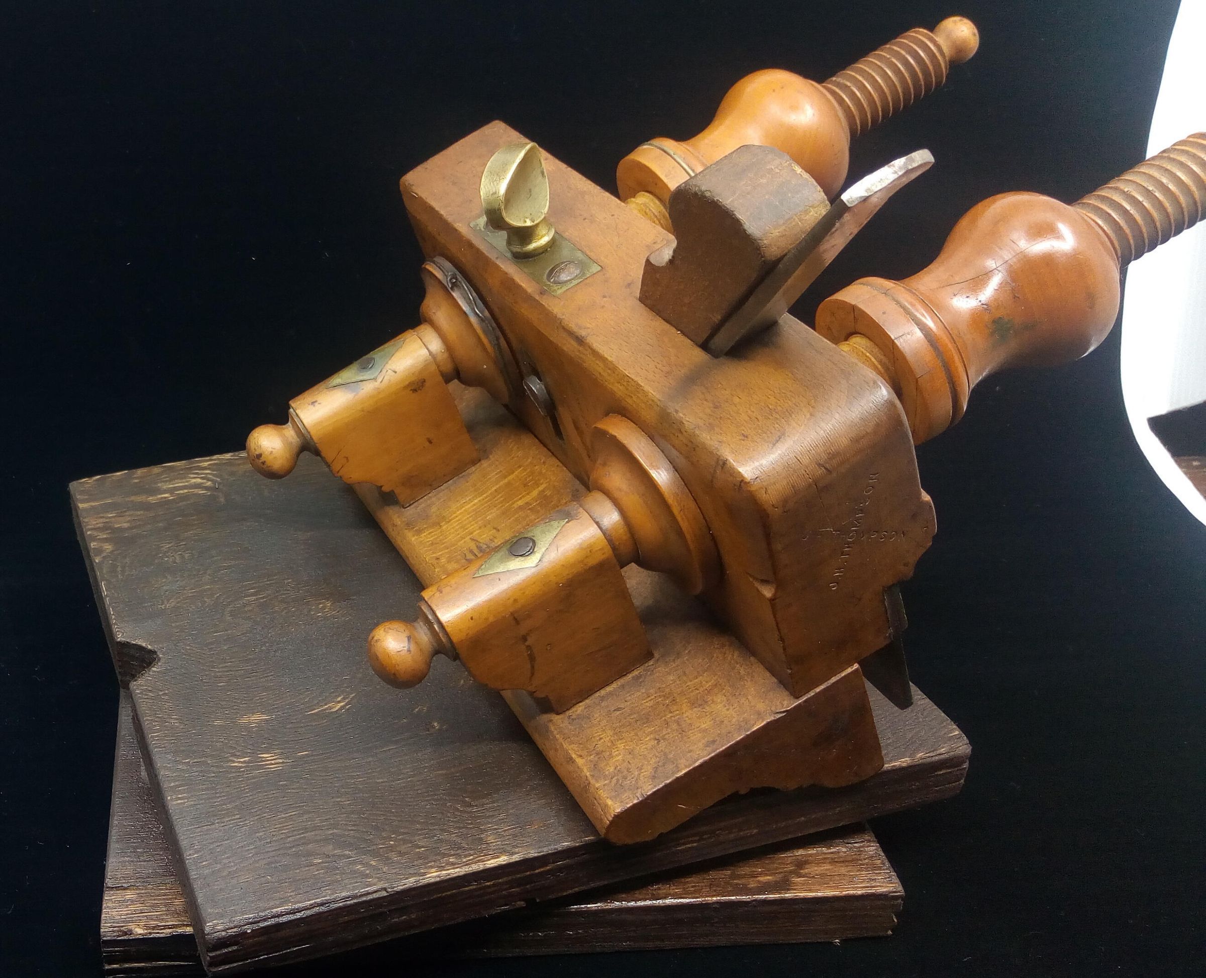 Atkin & Sons were in business in Birmingham, England as toolmakers from around 1830 to the mid 1970s. This plane represents the rising standards of living of the Victorian era, as the middle class grew and could buy finely finished furniture. At the same time the manufacture of tools was industrialized, rather than being made by the craftsman and his local blacksmith. This plane is stamped J.H. Thompson, a craftsman who could afford to have a stamp made to mark his treasured tools, there are a number of other tools in the museum collection with the same stamp.
