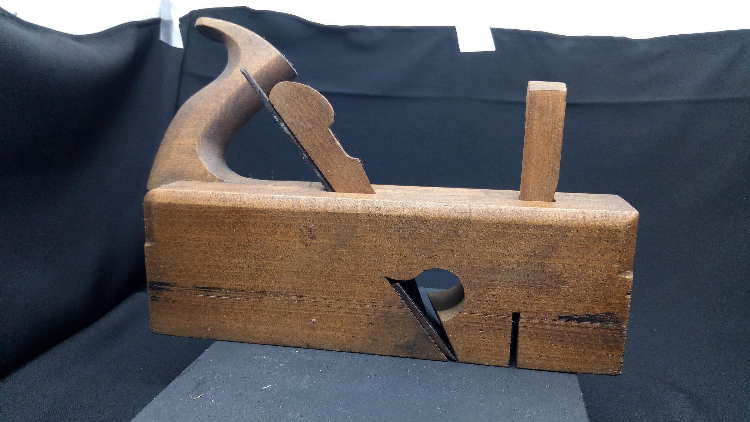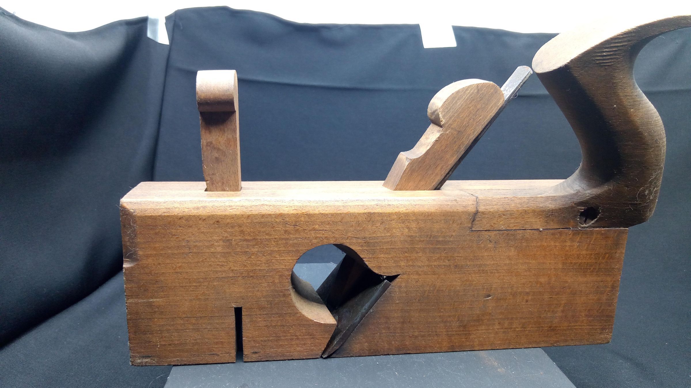 Plane to produce rebates or dadoes up to 2 inches wide, with a side tilted handle. Front cutter is missing.Use