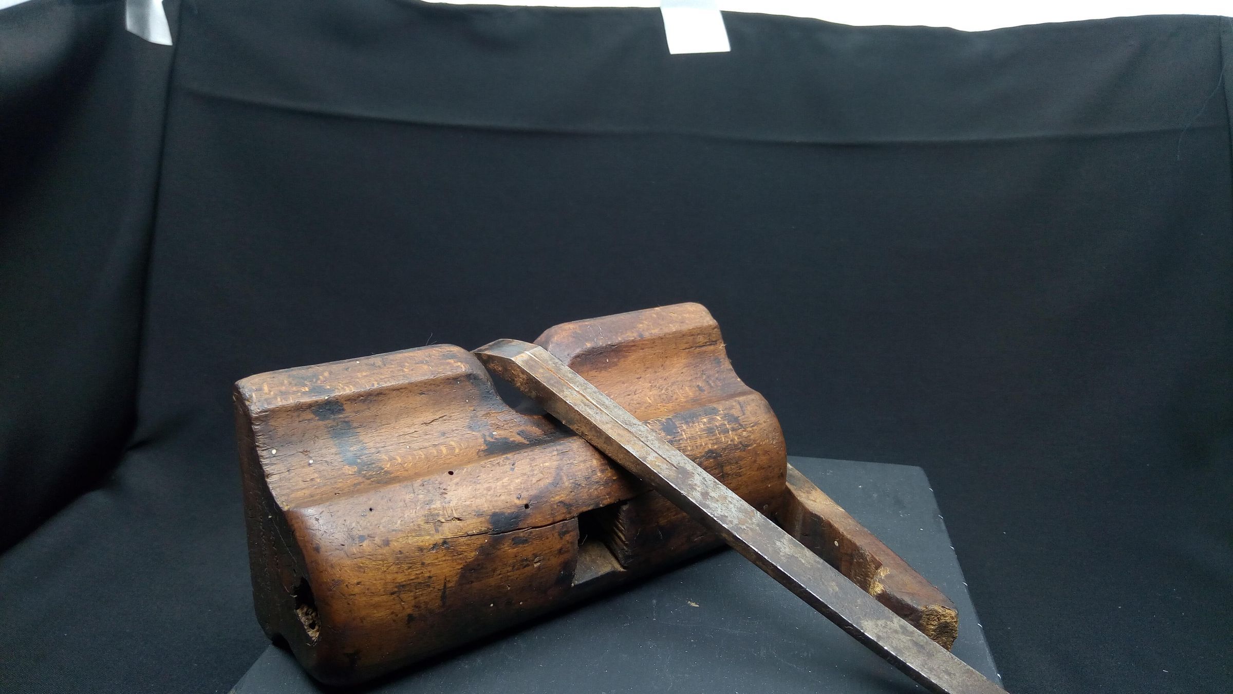 A wooden router plane with a blade taken from a wooden plough plane.Use