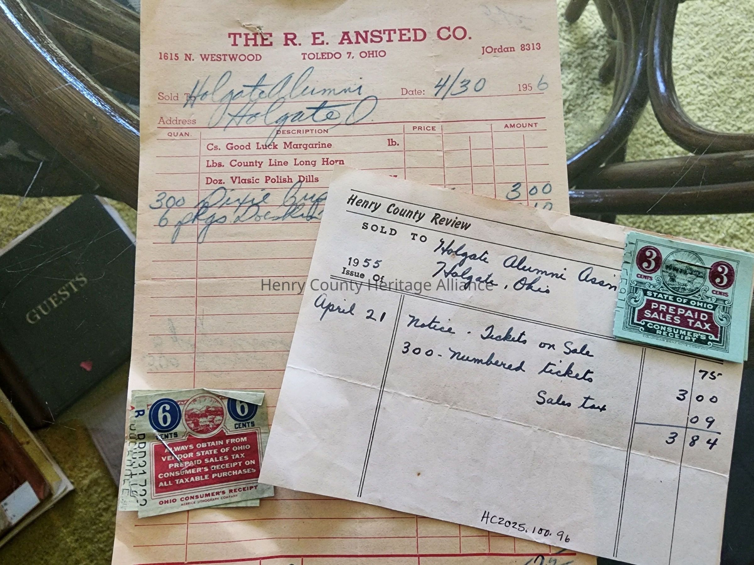 (2) 1955 Receipts for the Holgate Alumni w/Prepaid Tax Stamps