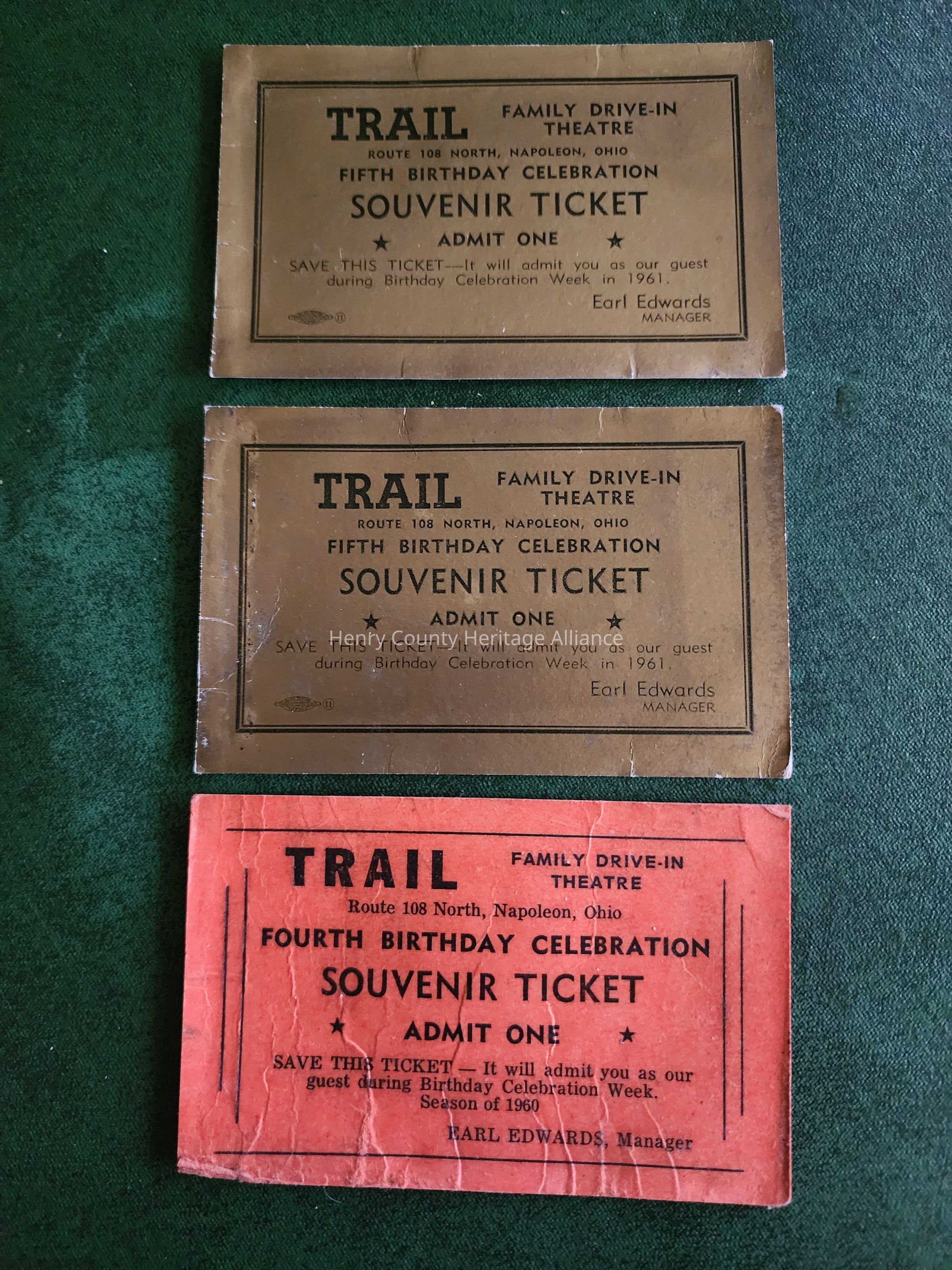 (3) 1960's Trail Drive-In Souvenir, Use the Month of your Birthday Free Entry