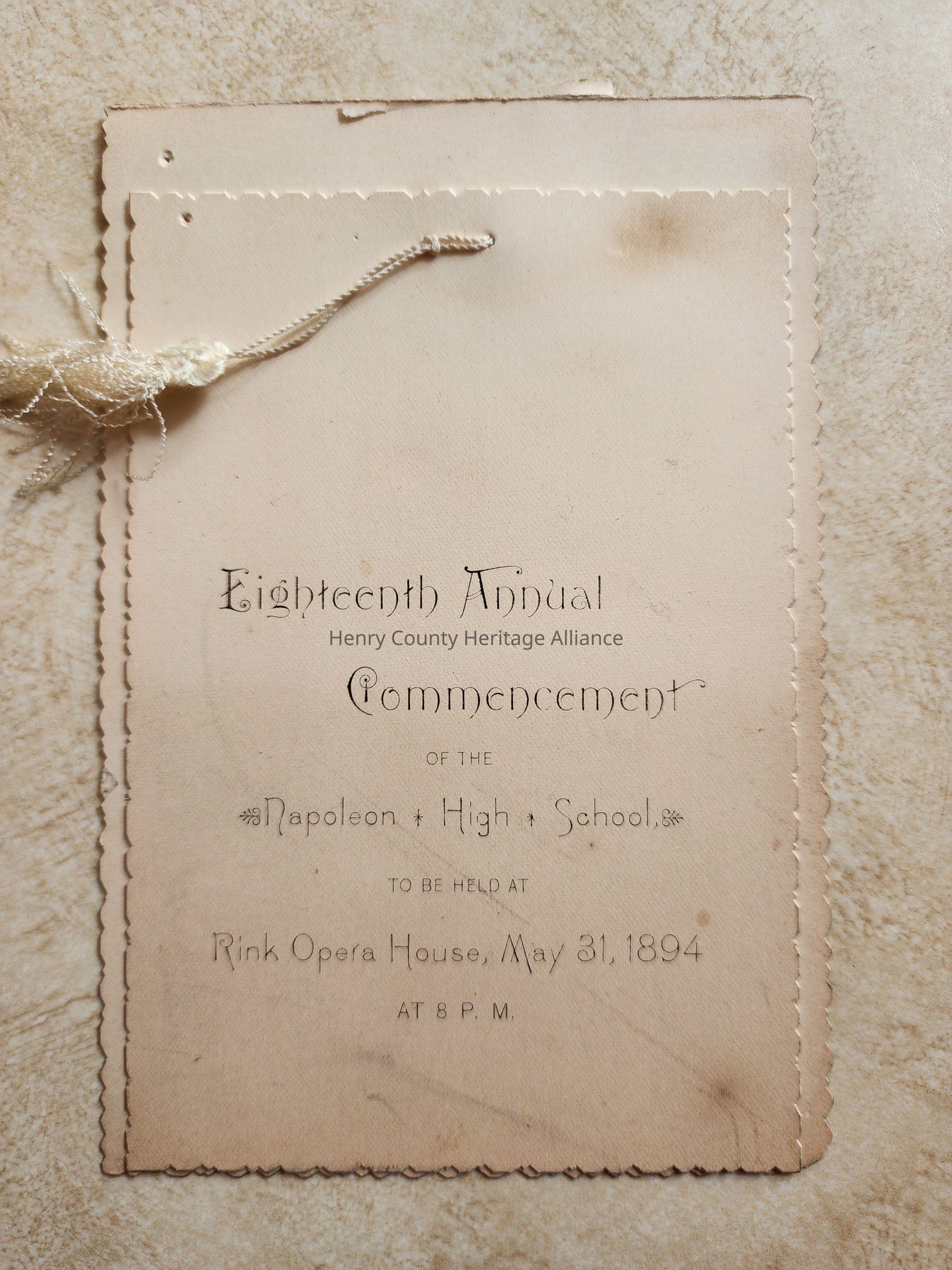 1894 18th NHS Commencement Program, Held at the Rink Opera House