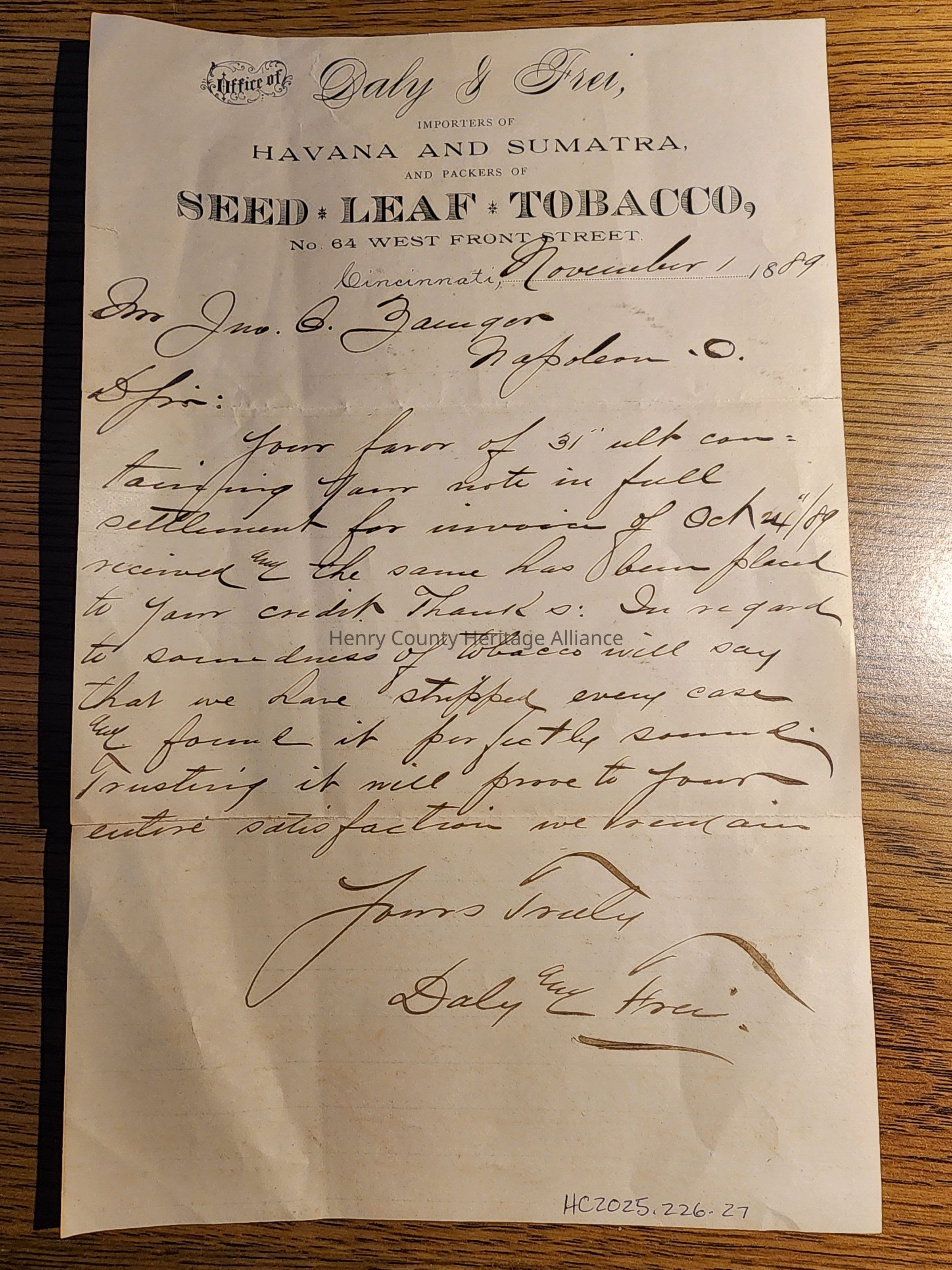 1889 Daly & Frei Letterhead