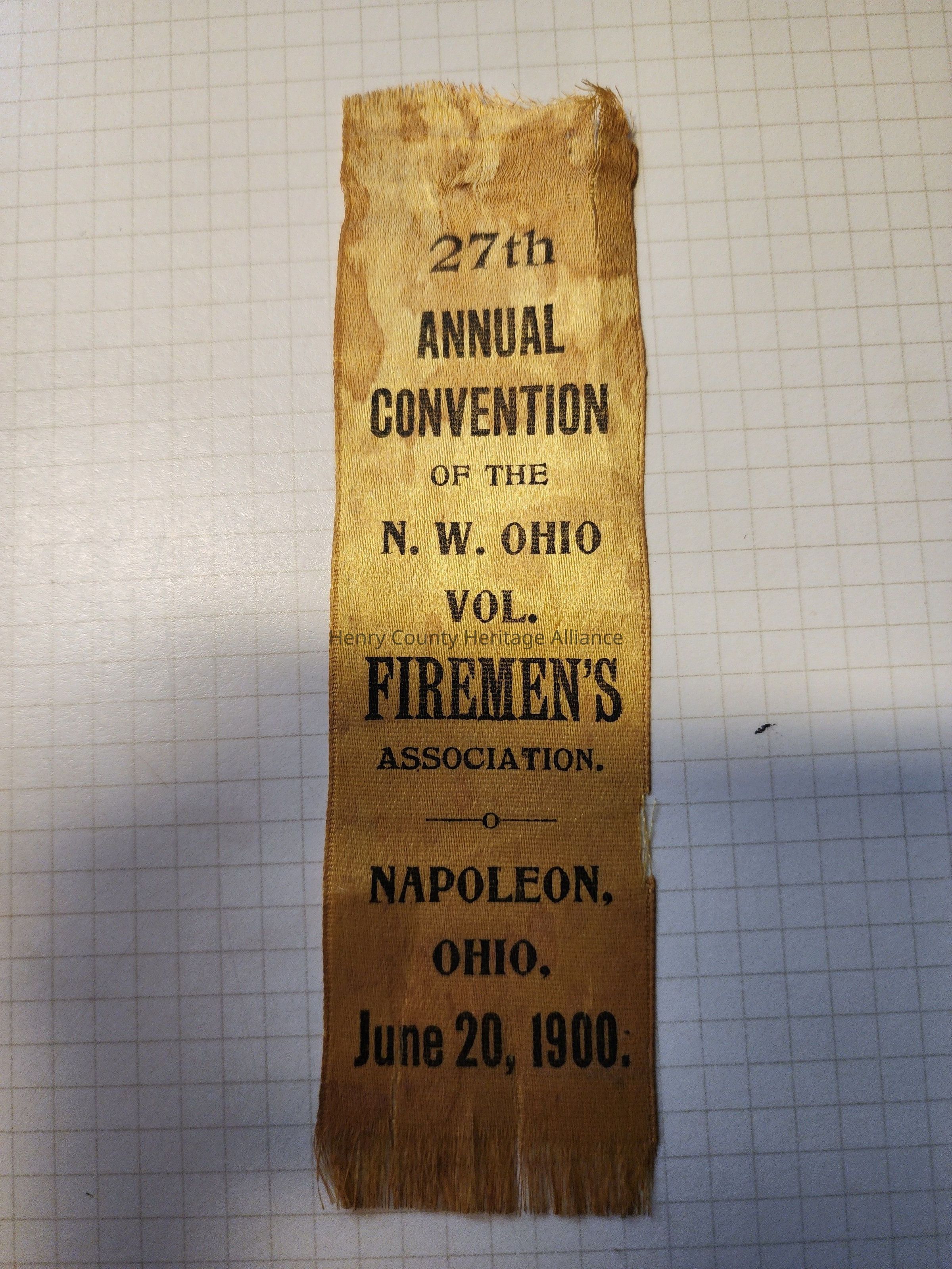 1900 NWOhio Fireman's Convention, Napoleon, Ohio Ribbon