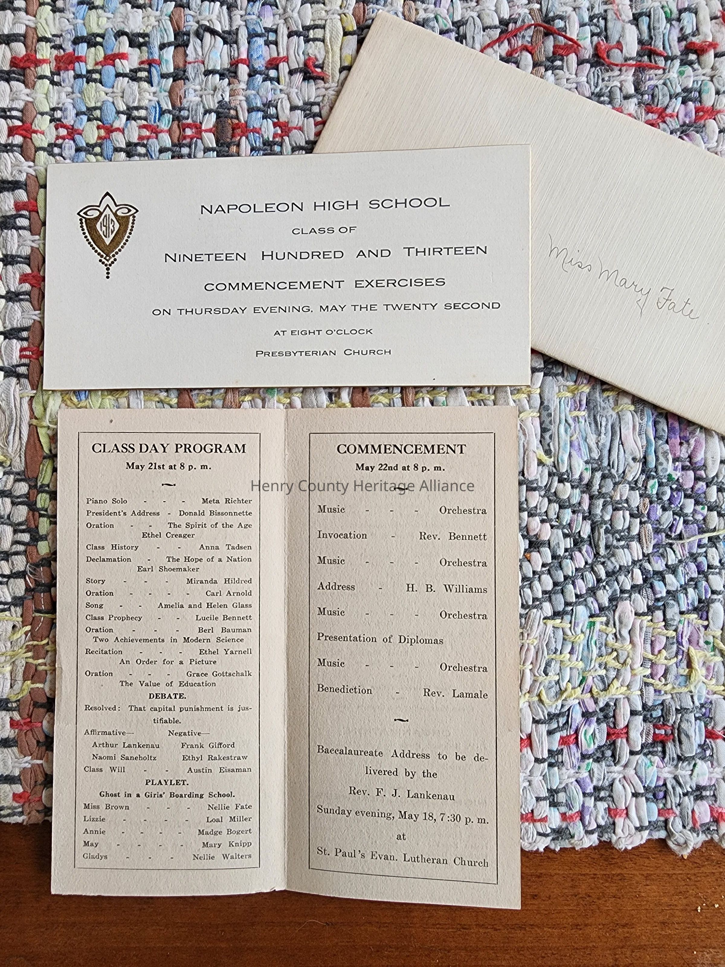 1913 Napoleon High School Class Day & Commencement ProgramDescription