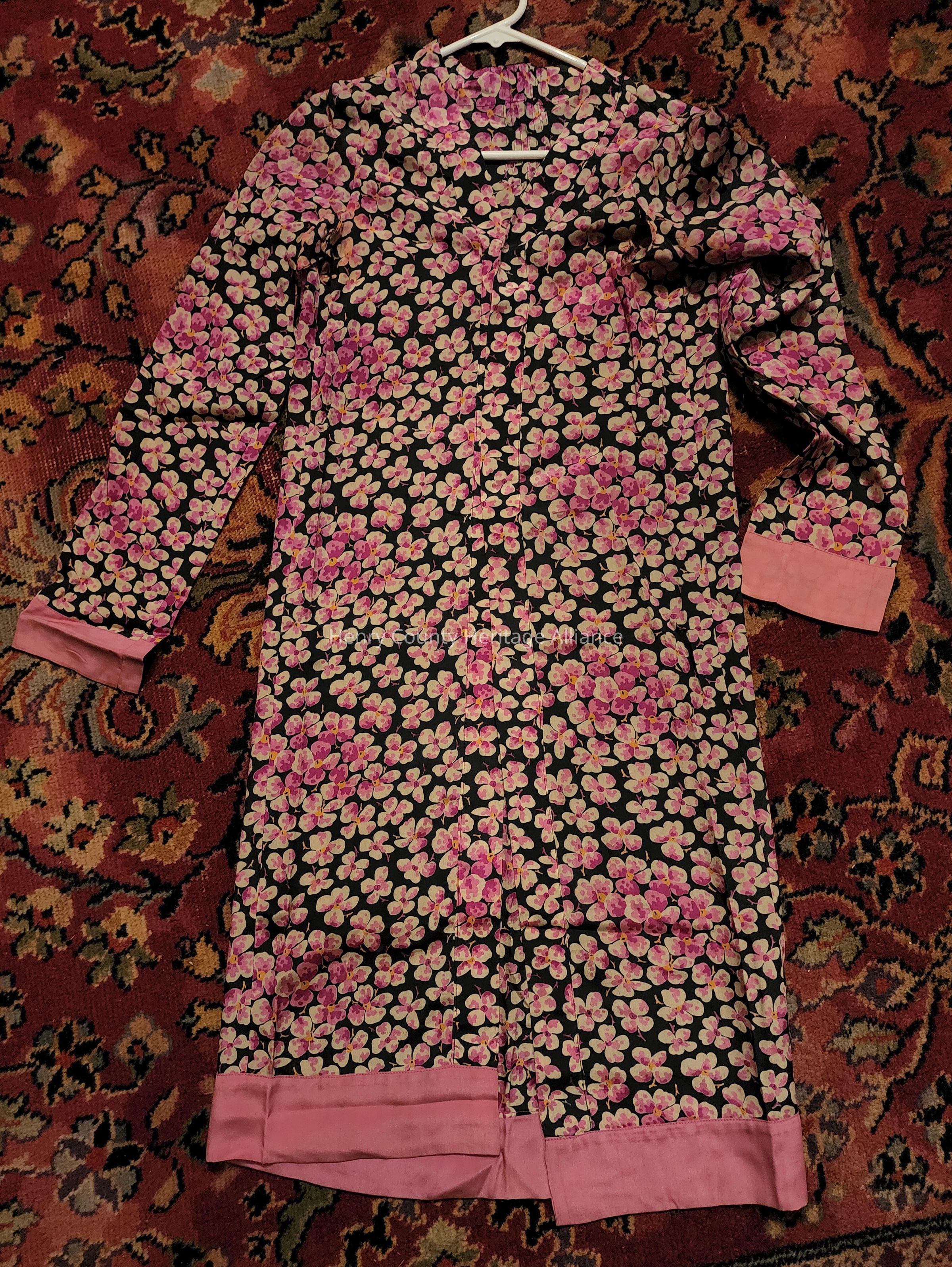 Silk Robe/Kimono. Hydrangea Print with turn-up Cuff. Button Front