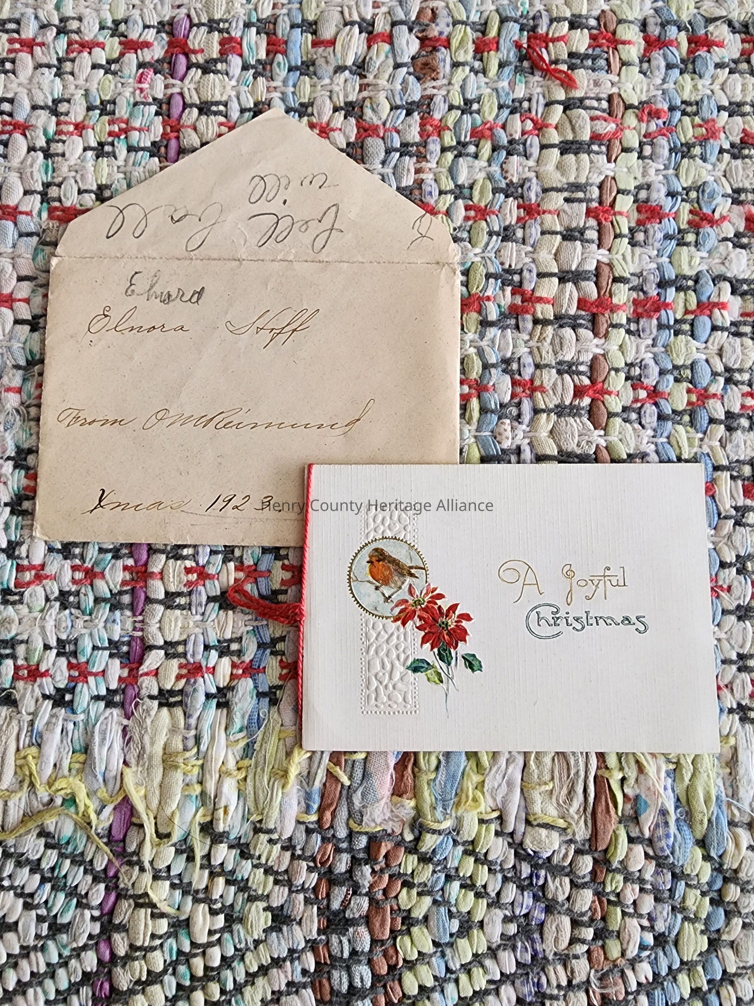 1923 Christmas Card & Envelope to Elnora Hoff from OM Reimund