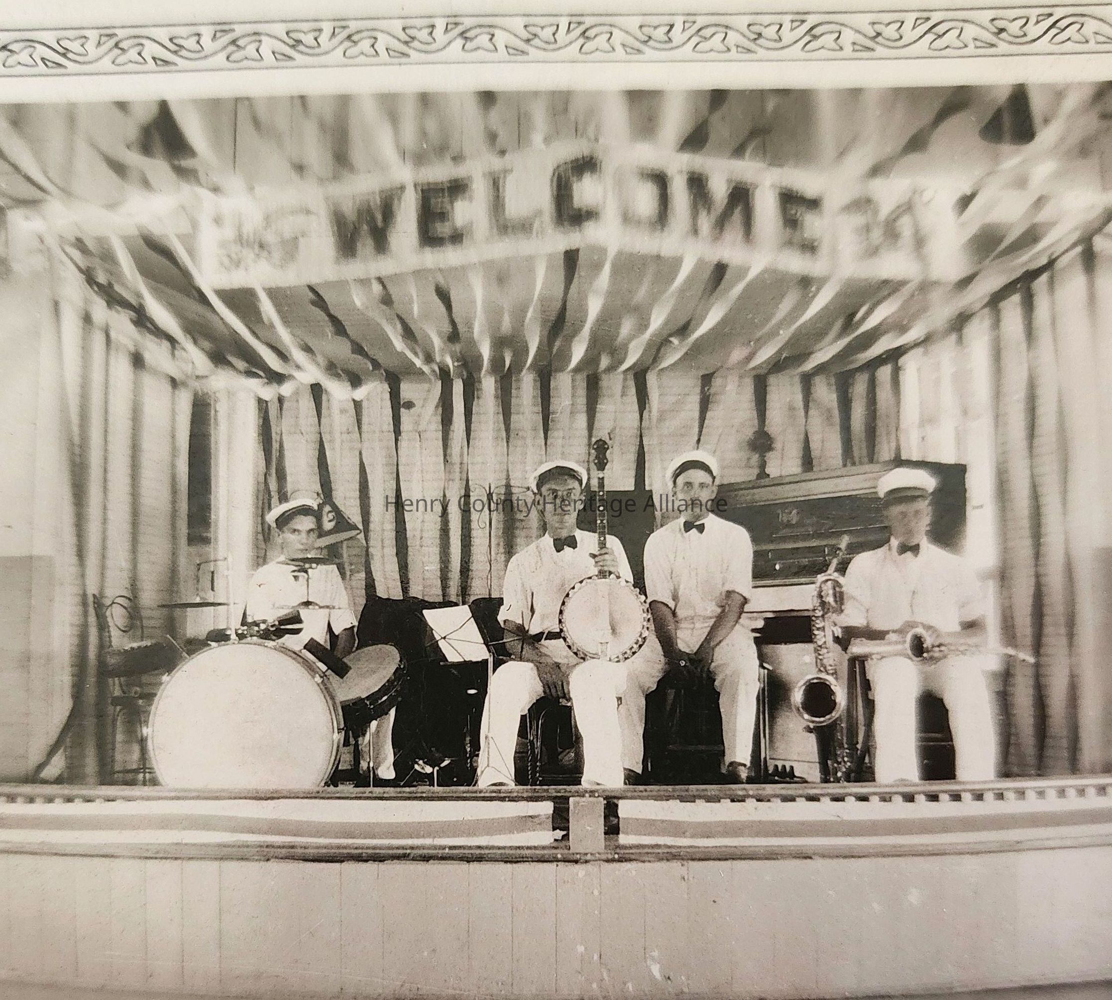 1929 Band: Eldor Gathman, Drummer. Harold Walters, Piano. Byron Mengerink, Sax. Clarence Hardy, Banjo