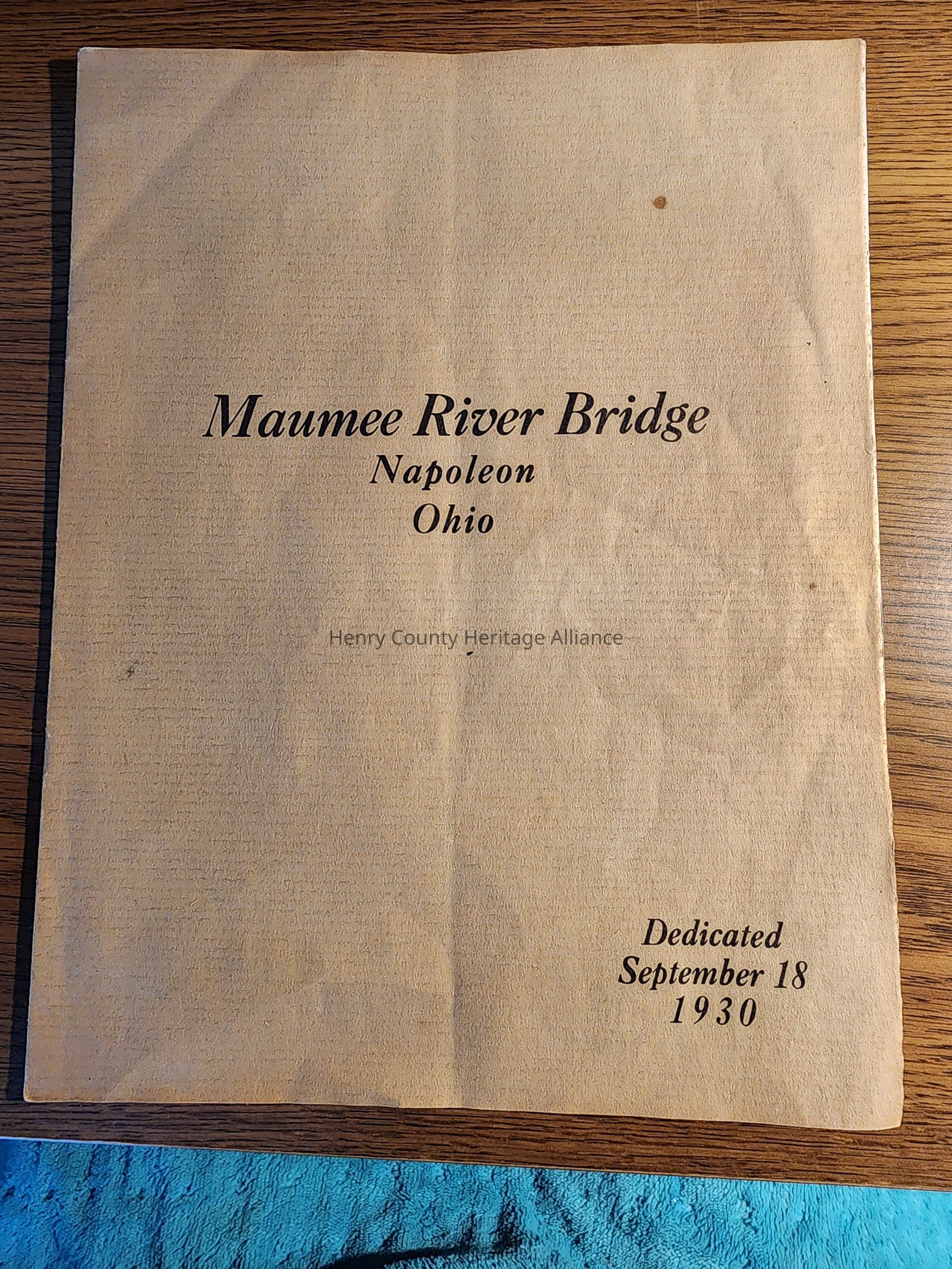 1930 Maumee River Bridge, Napoleon, Ohio Dedication Brochure