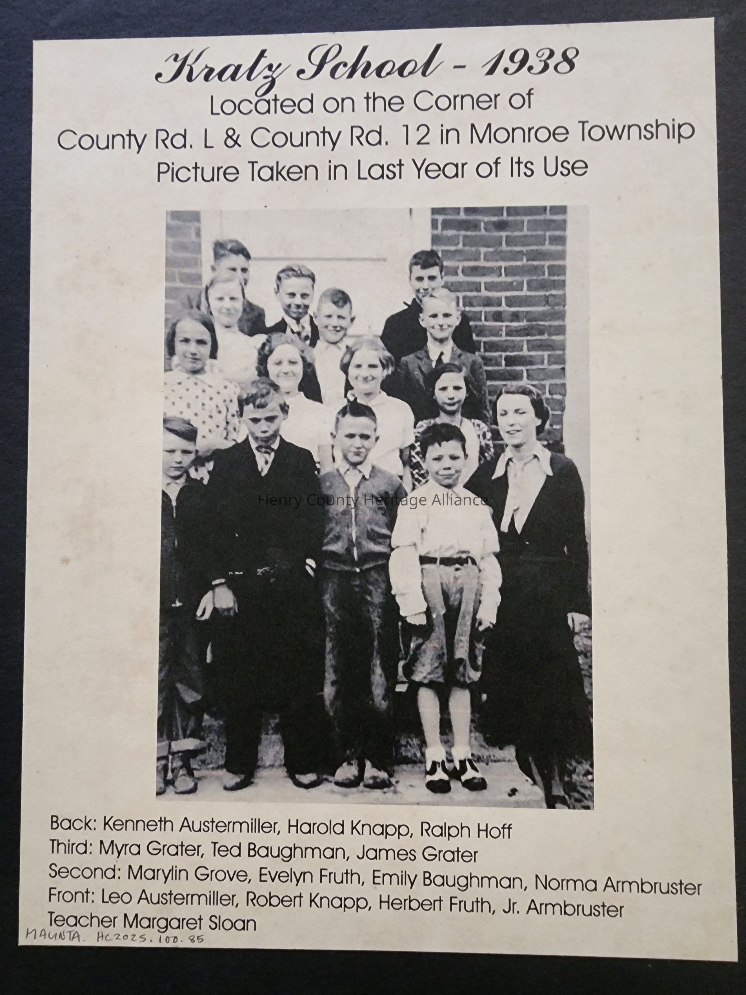 1938 Kratz School Class Photo (Co Rd L & 12)