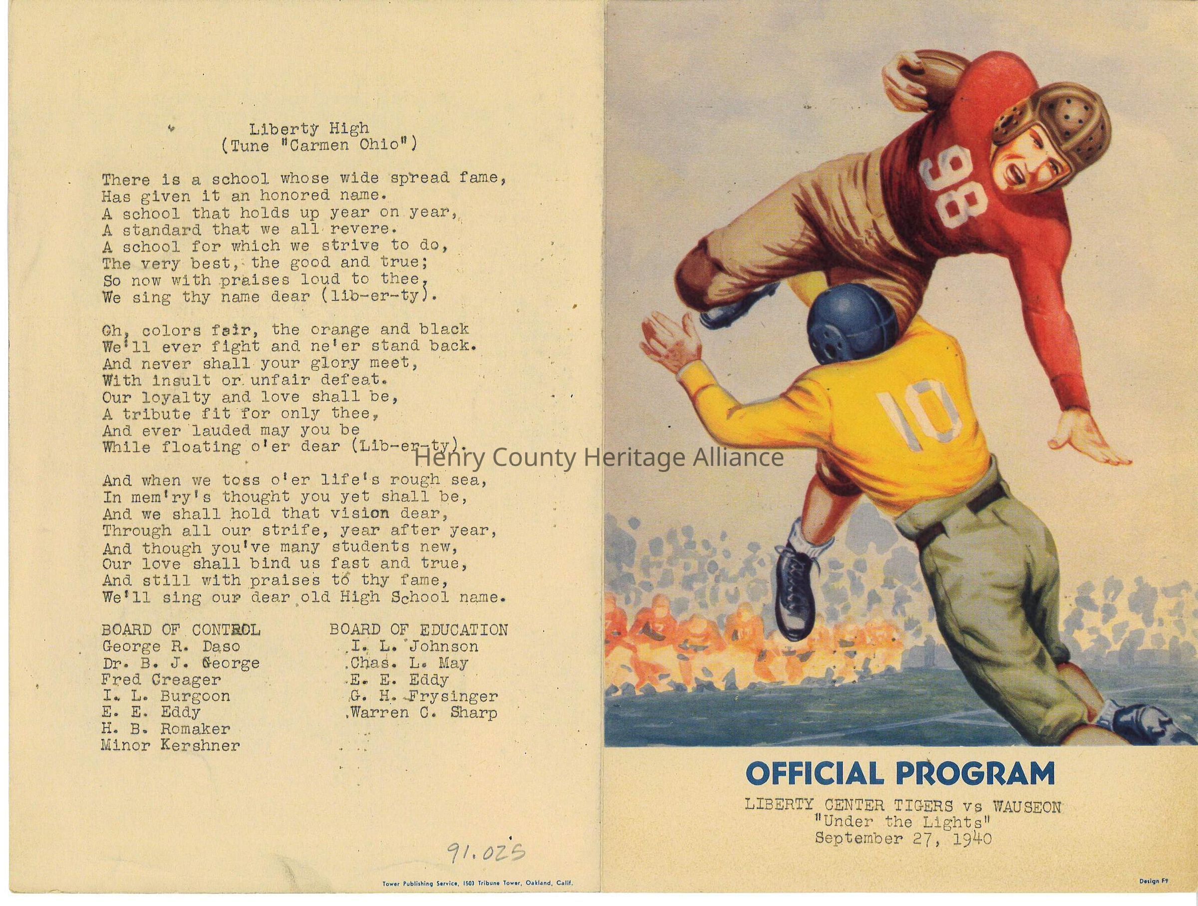 1940 Program for a Liberty Center High School Football Game with Wauseon High School