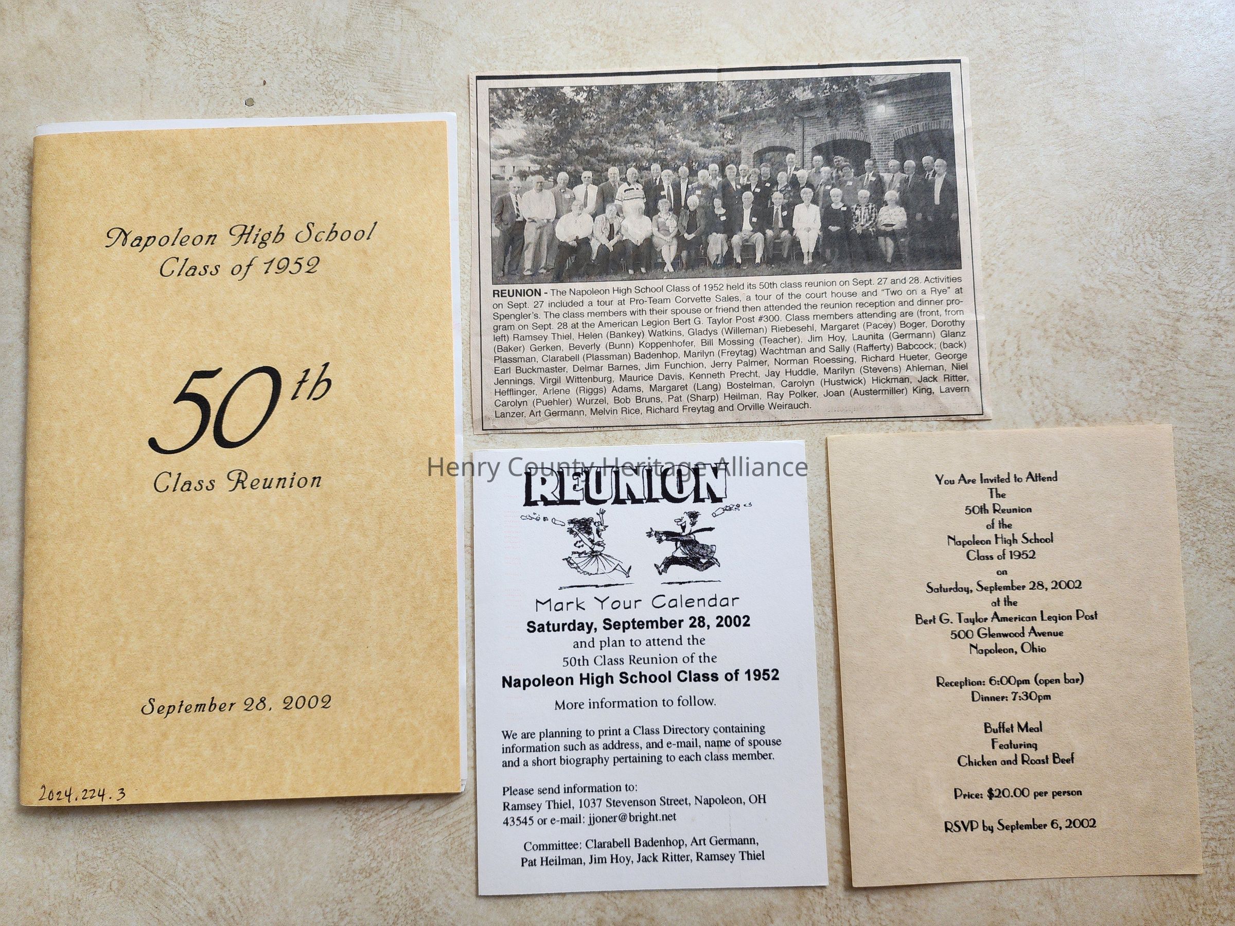 1952 NHS 50th Reunion, Program, Newspaper, More