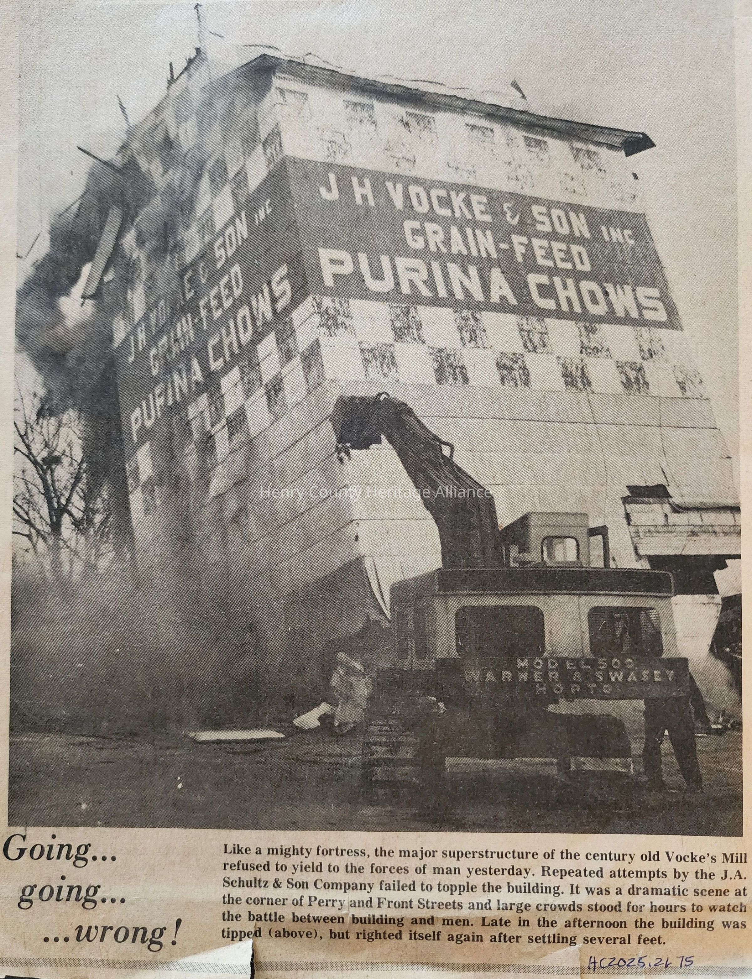 1973 Newspaper Clipping, Demolition of the Vocke Mill, Perry Street, Maumee River, Napoleon, Ohio
