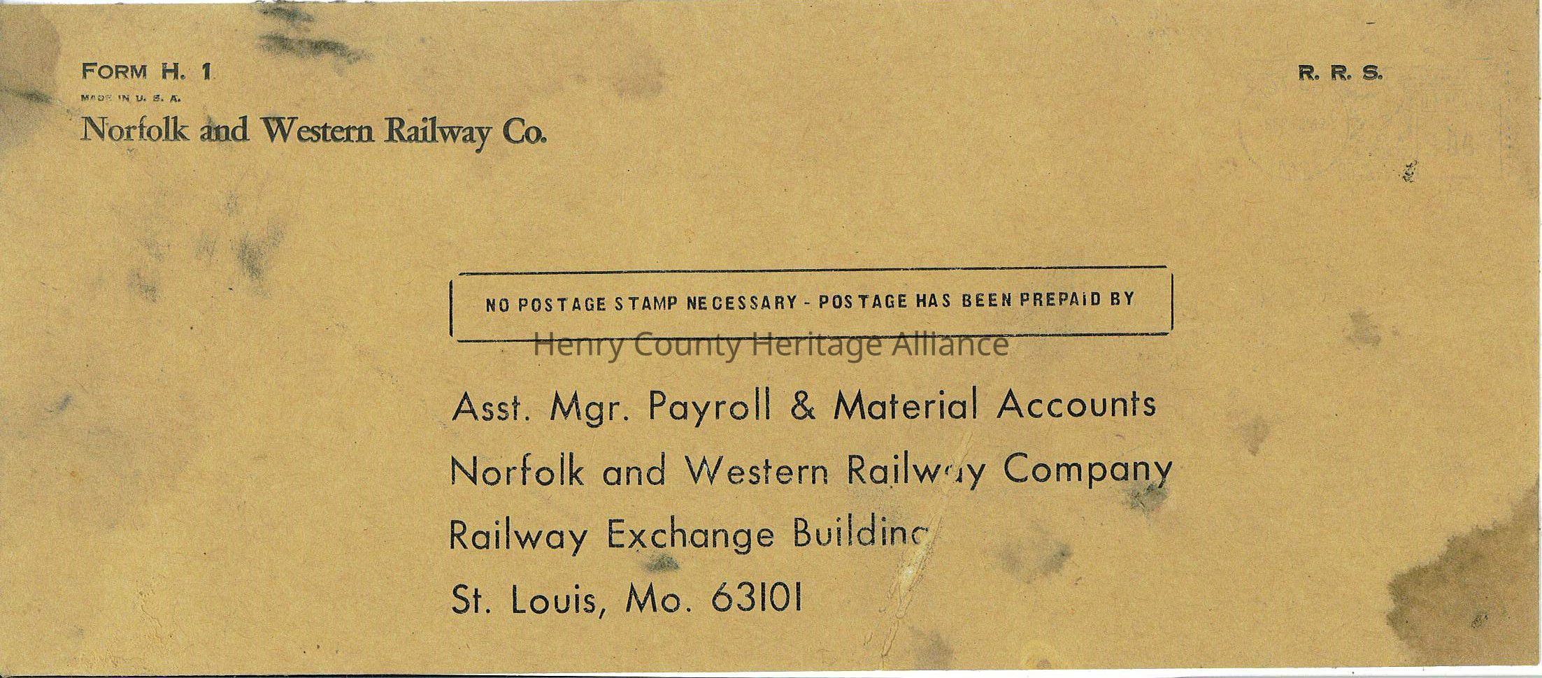 Norfolk and Western Railway Company Envelope