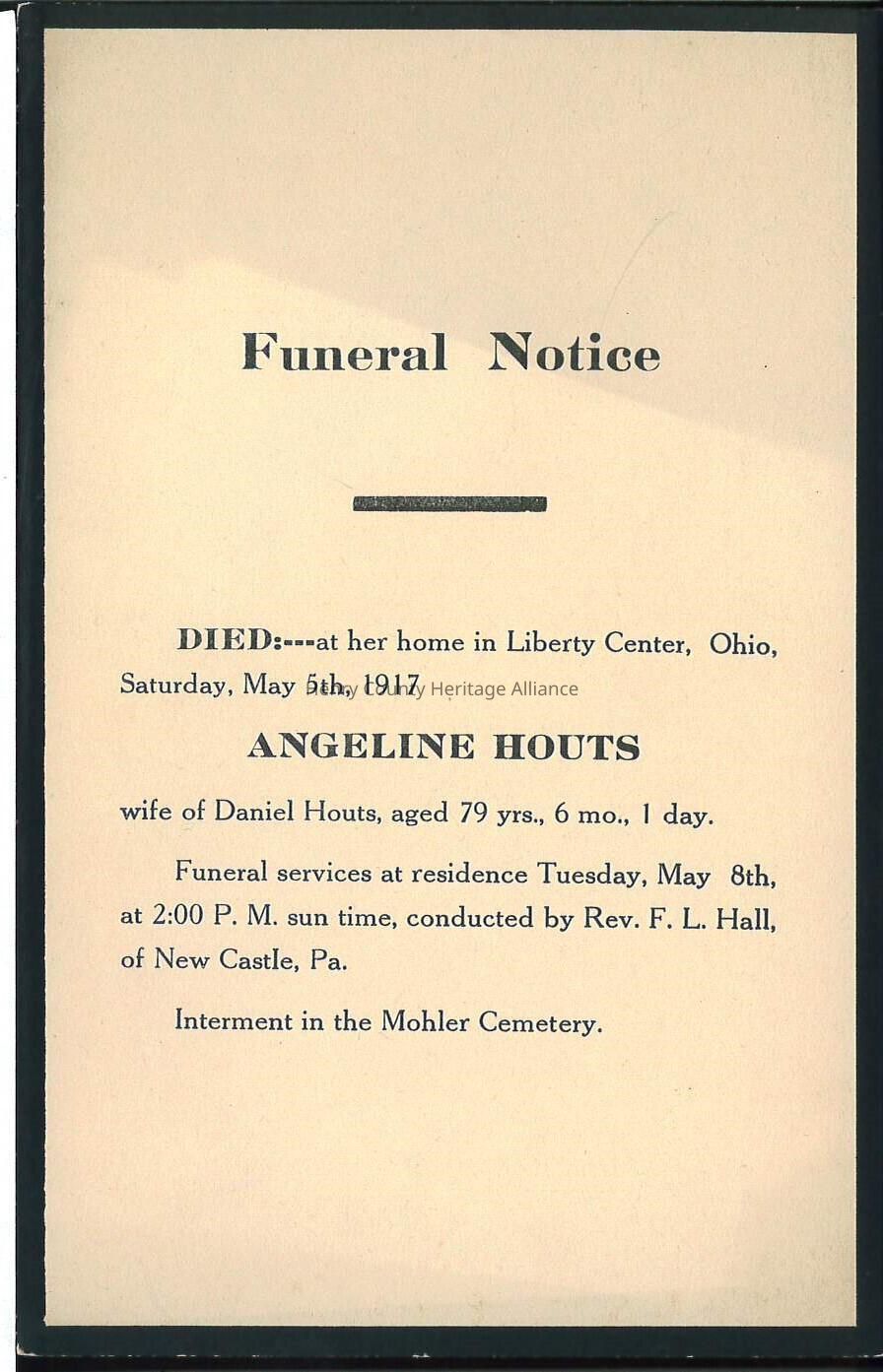 Death Notice of Angeline Houts