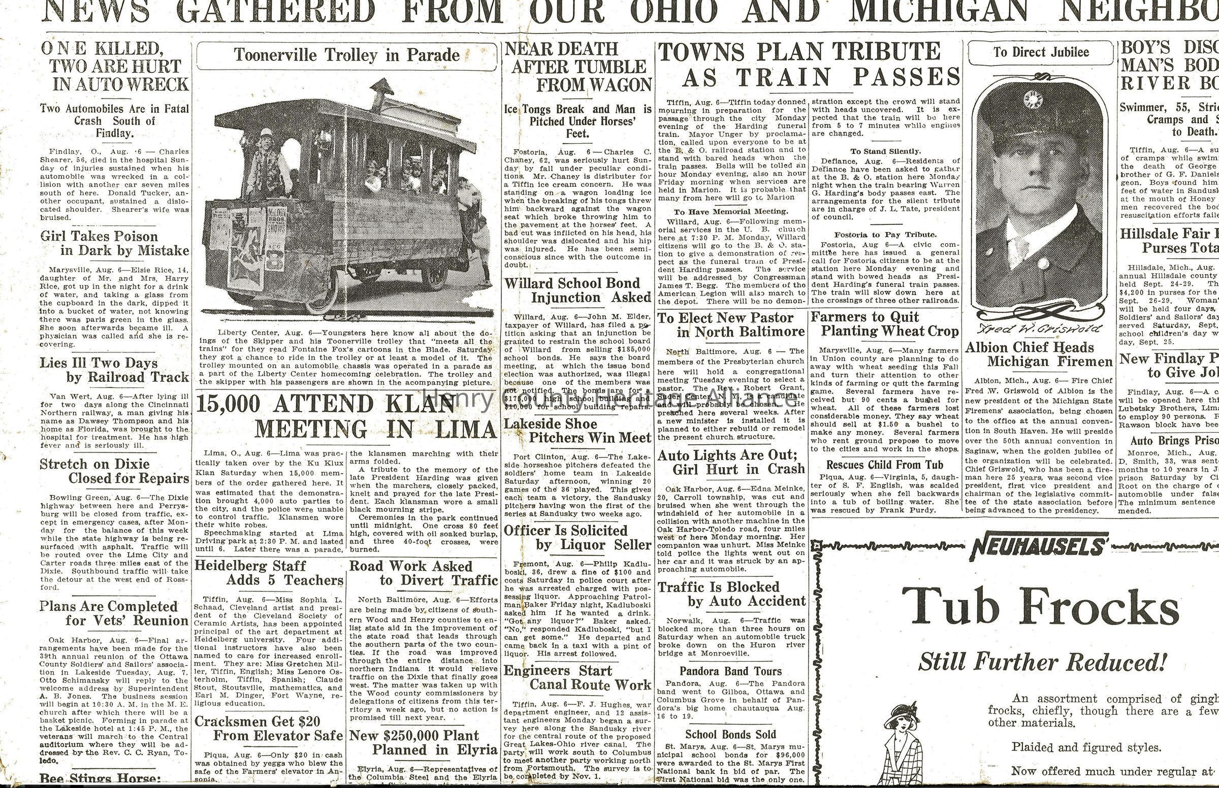 Skipper and the Tooneyville Trolley in Liberty Center August 1923
