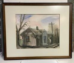 Framed Watercolor Painting of Liberty Center Depot. Picture was purchased at an antique shop by Tim and Jerry Conley for their mother..Collection