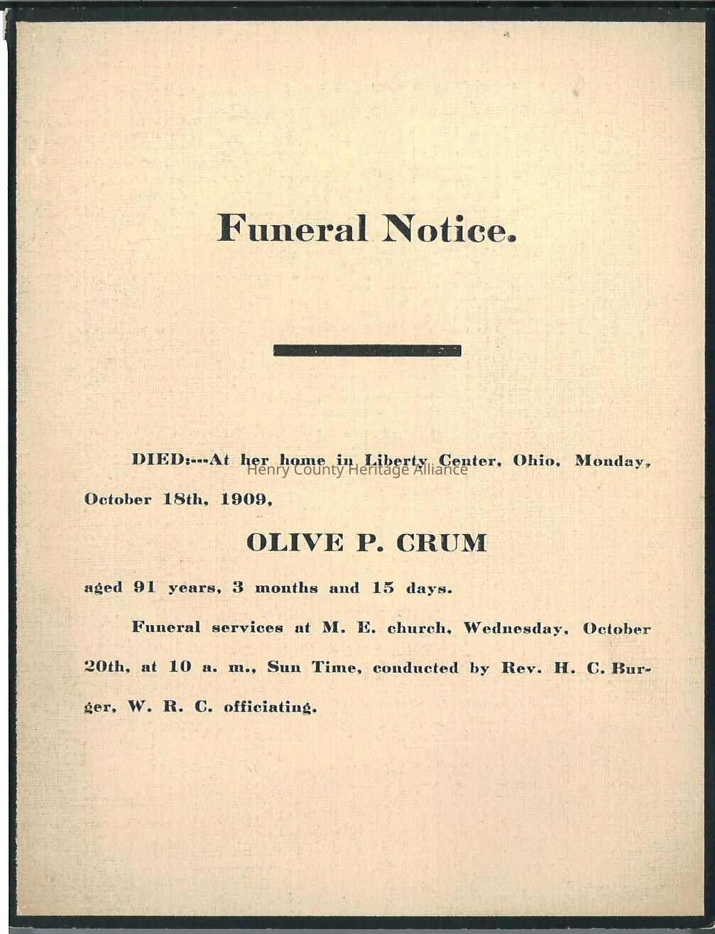 Death Notice of Olive P. Crum