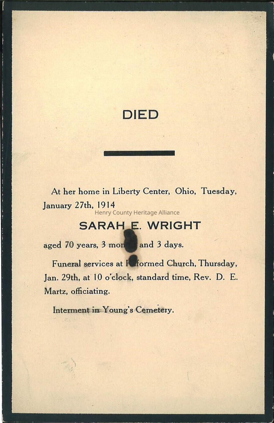 Death Notice of Sarah E. Wright