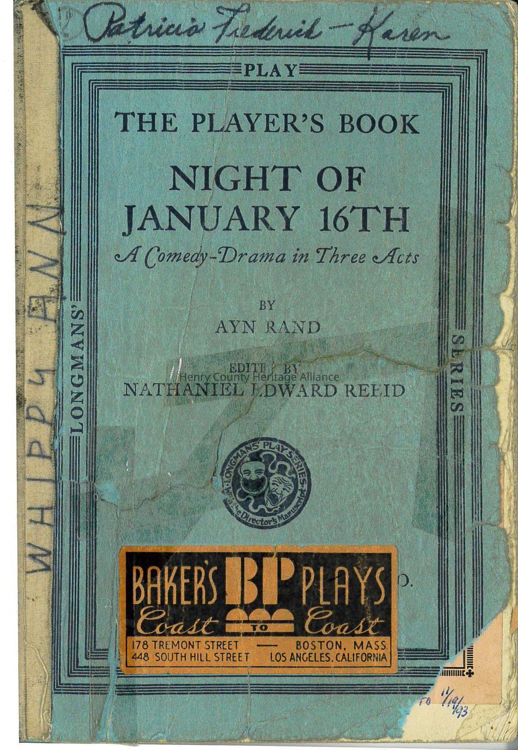 The Player's Book for "Night of January 16th" Belonging to Patricia Frederick