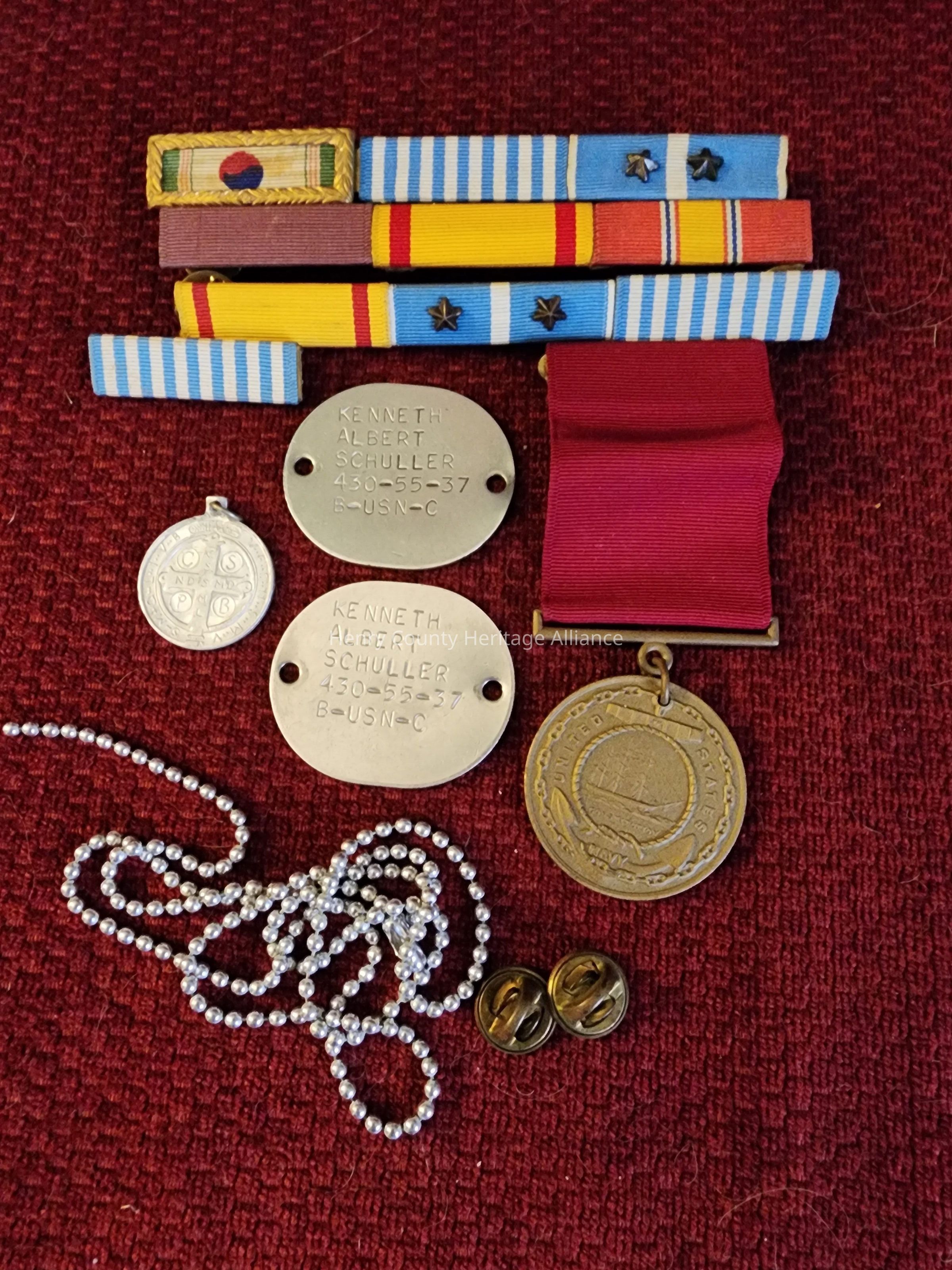 This Grouping of Medals and Bars were presented to Kenneth Schuller during his service in Korea. Dog tags are replacement tags or additionals.Collection