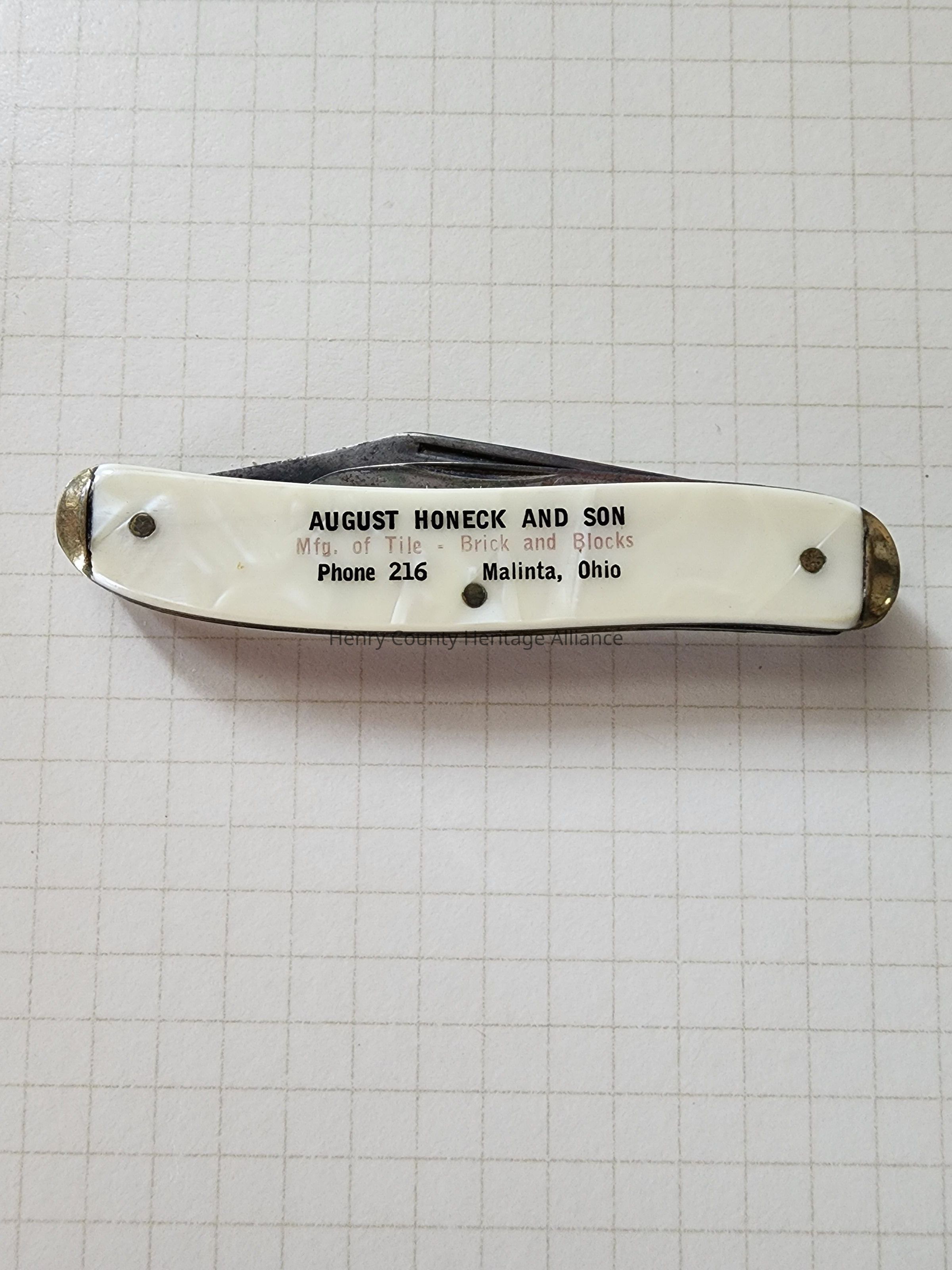 August Honeck & Son, Mfr. of Tile, Malinta, Ohio Advertising Pocket Knife