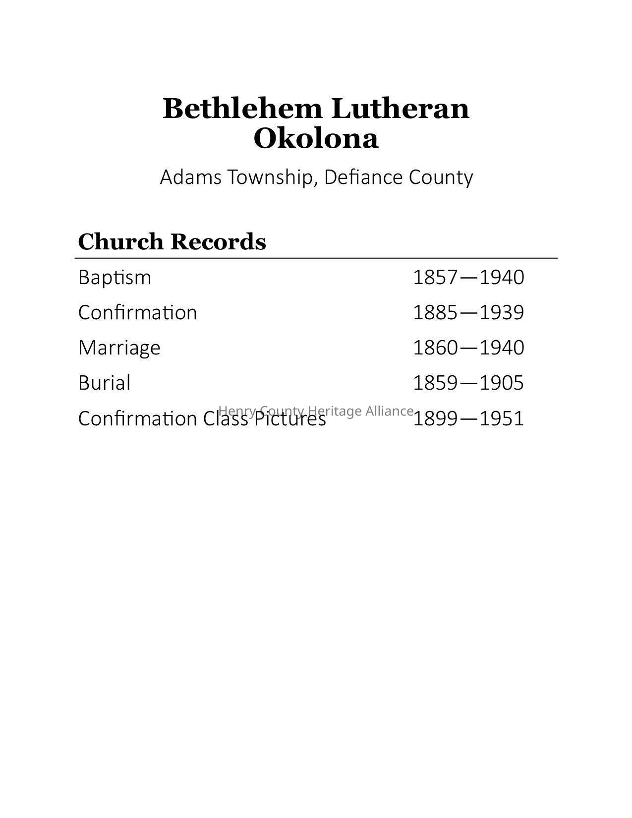 Adams Twp., Defiance County, Ohio - Church records consisting of: