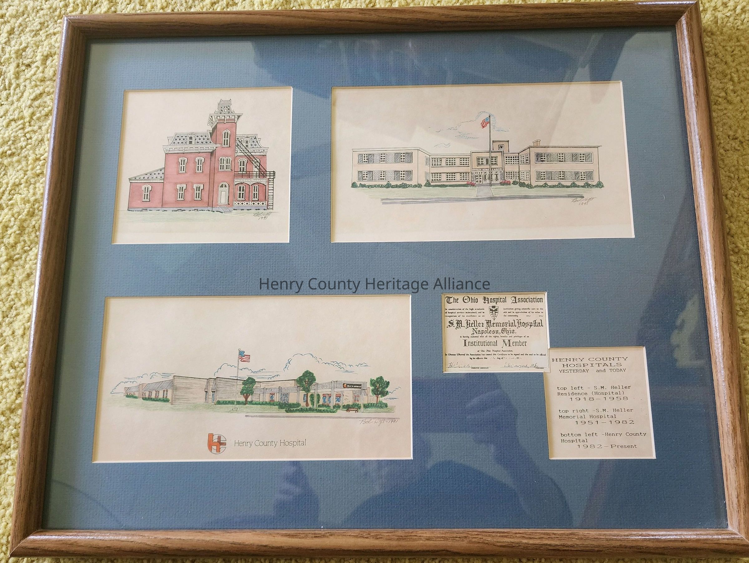 Bob Heft Artwork: Heller-Memorial Hospital in Three Stages, Framed & Matted