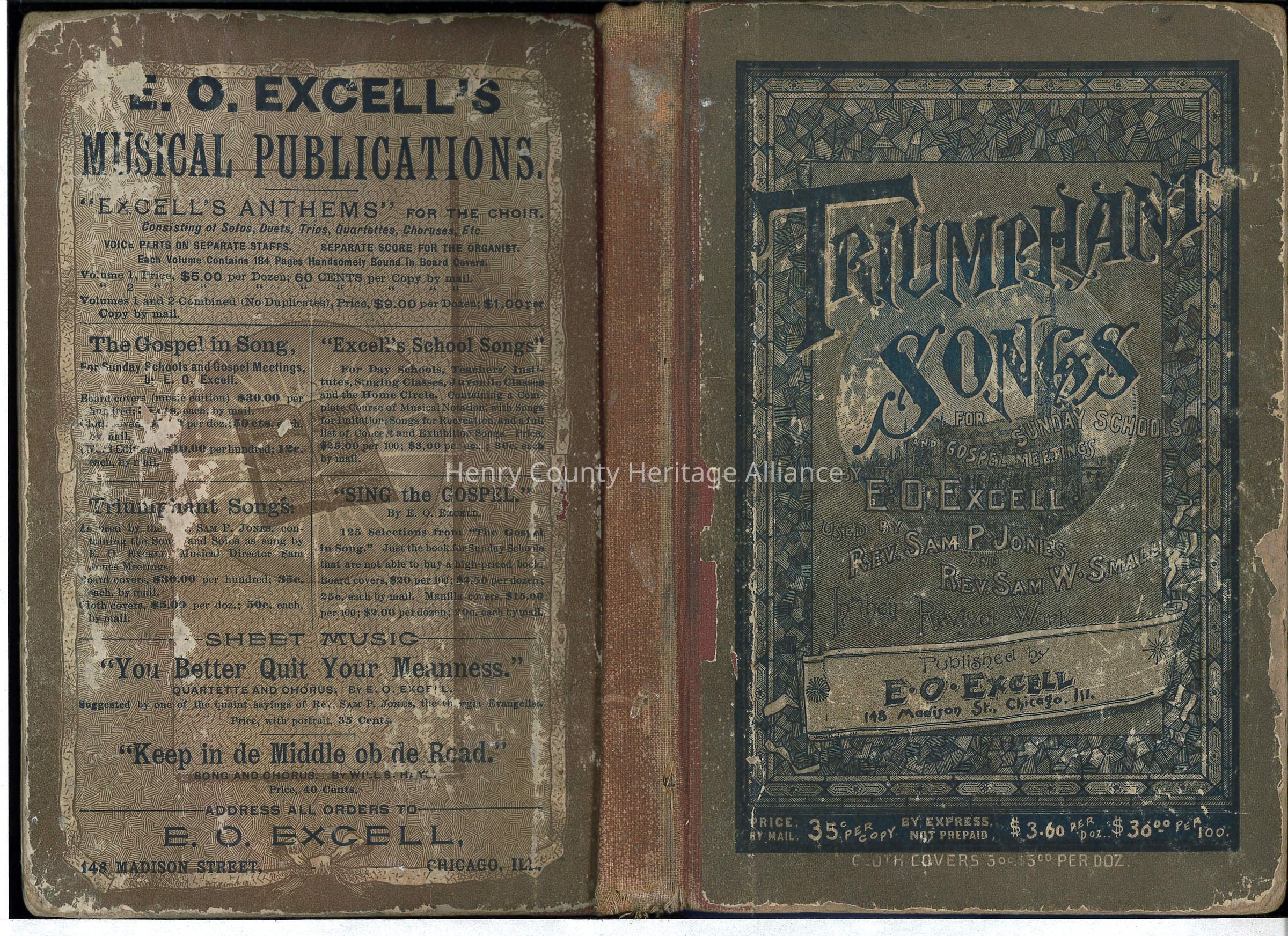 Book "Triumphant Songs" -Gospel Songs by E.O. Excell 1887
